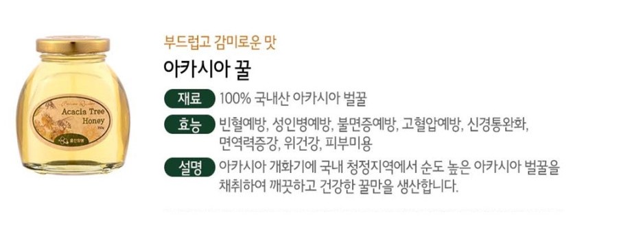 나는 부드럽고 감미로운 맛의 아카시아 꿀을 주문했는 데