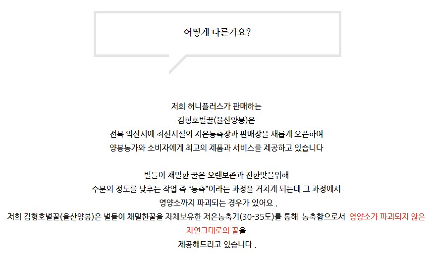 영양소가 파괴되지 않은 자연 그대로의 꿀을 제공한다고 나와 있다.