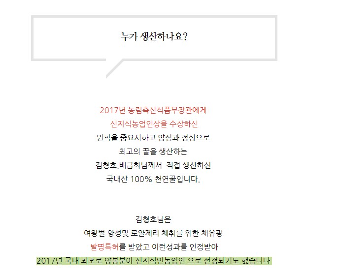 최근에 갑부의 이름을 딴 김형호 벌꿀로 판매하고 있었다.