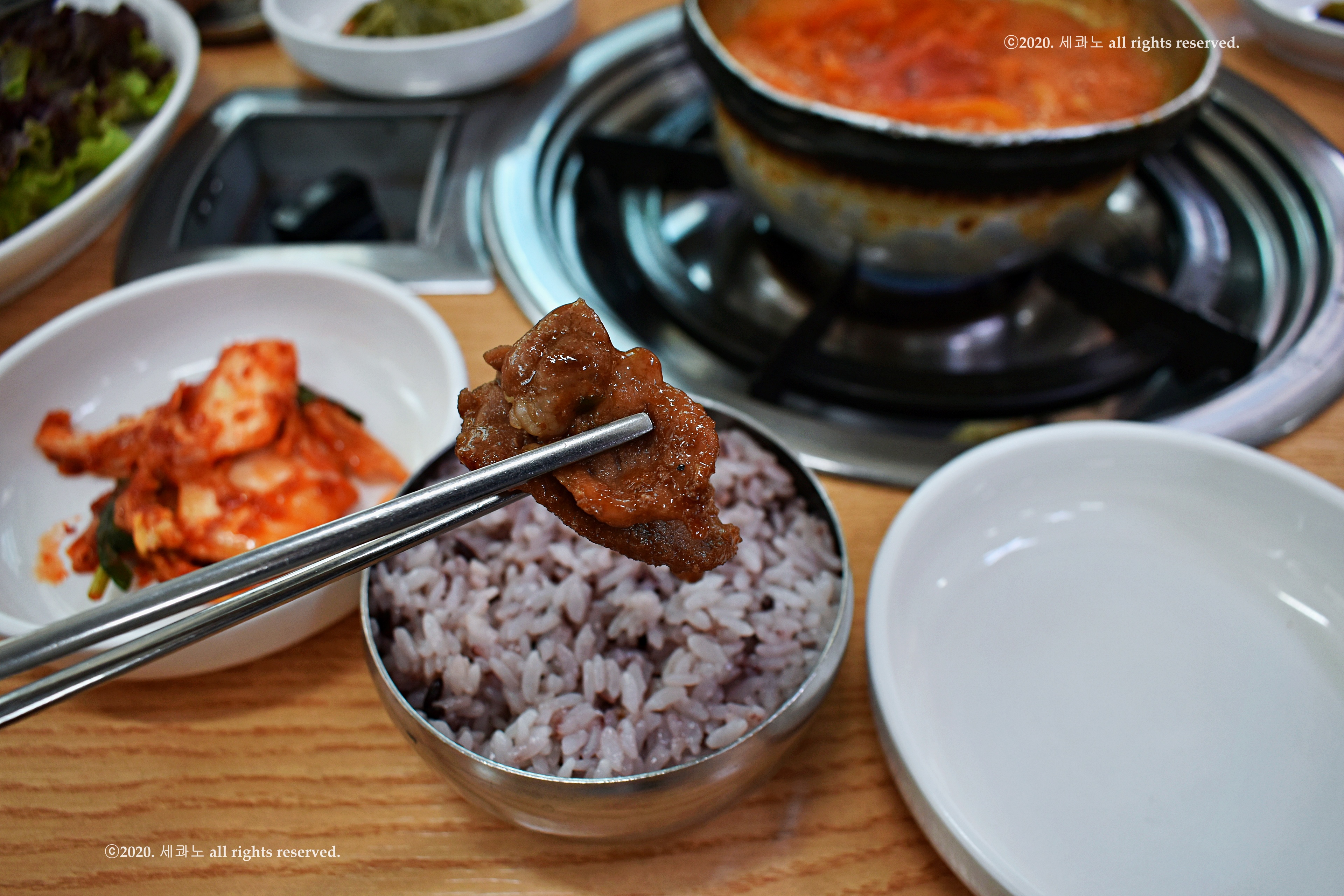 돼지불백 1개와 김치찌개 1개, 청국장 1개를 주문해 먹었다.