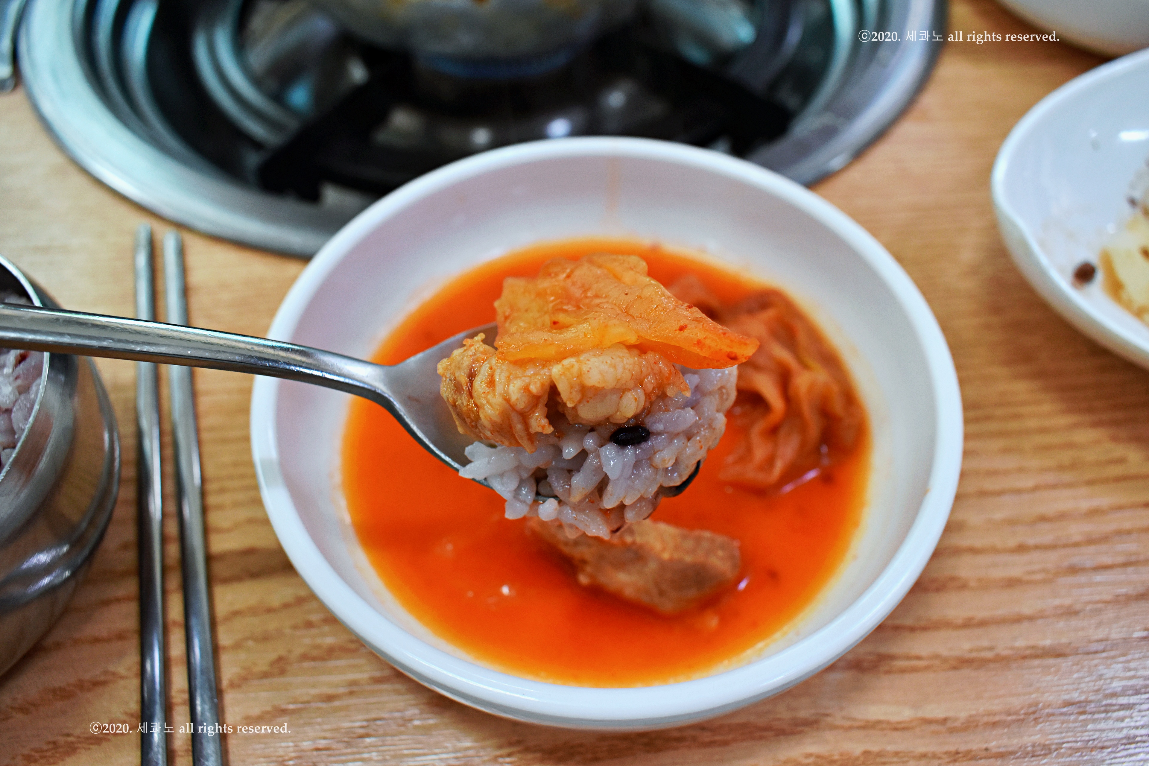 김치찌개나 청국장을 비빈 밥 위에