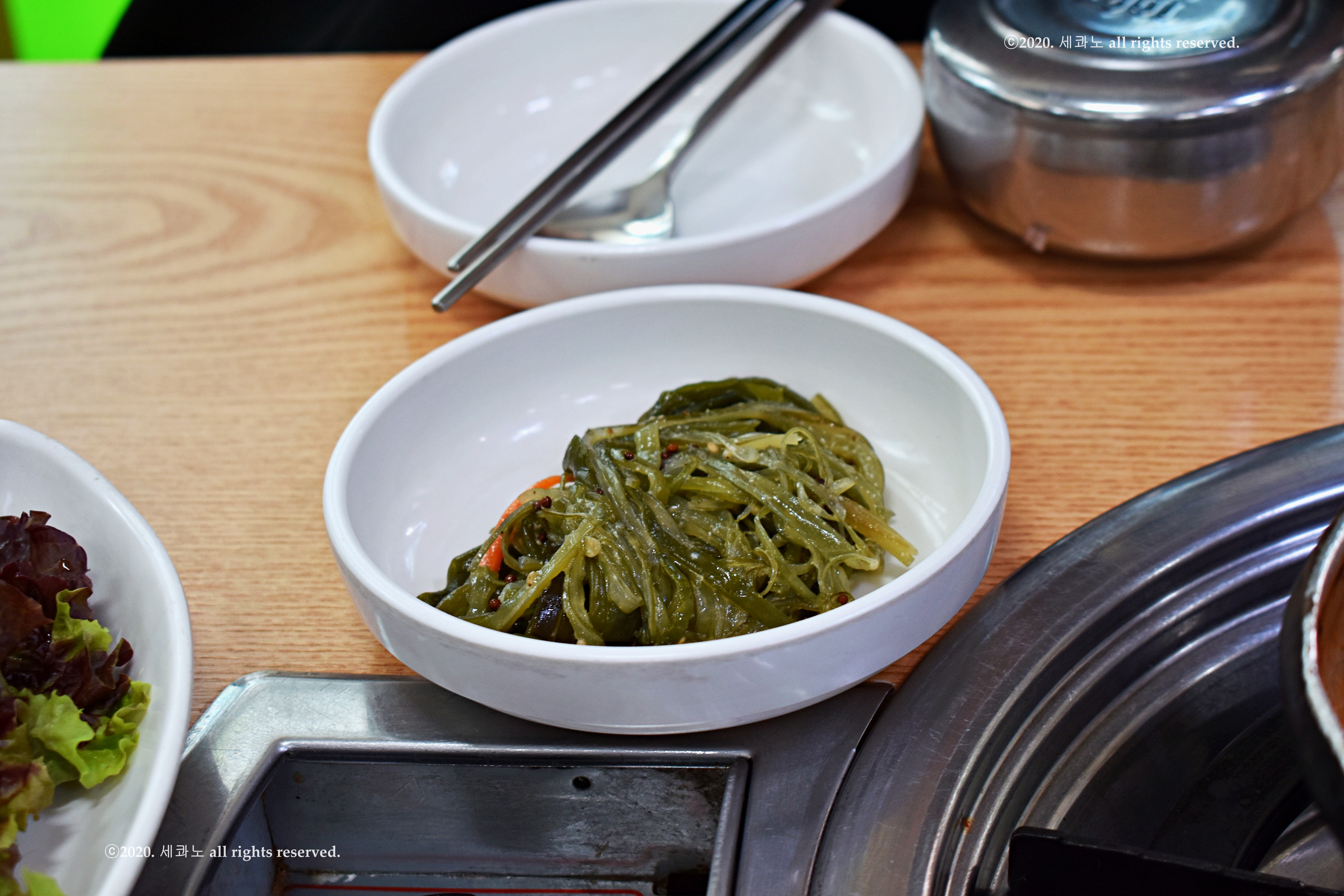 상추쌈, 배추김치, 그리고 미역줄기였던가...