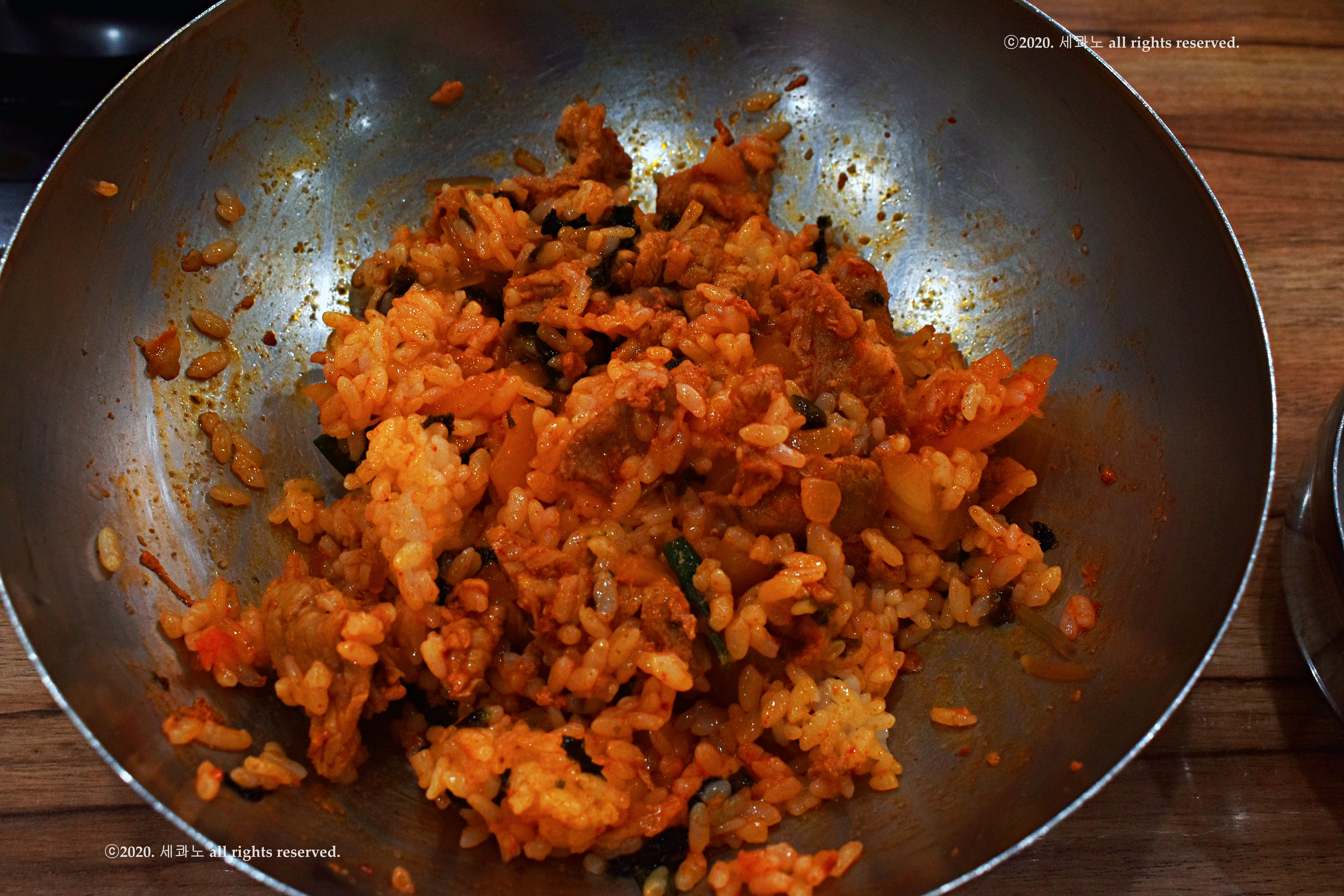 밥을 가장 마지막에 볶아 먹는 게 더 맛나기 때문이다.