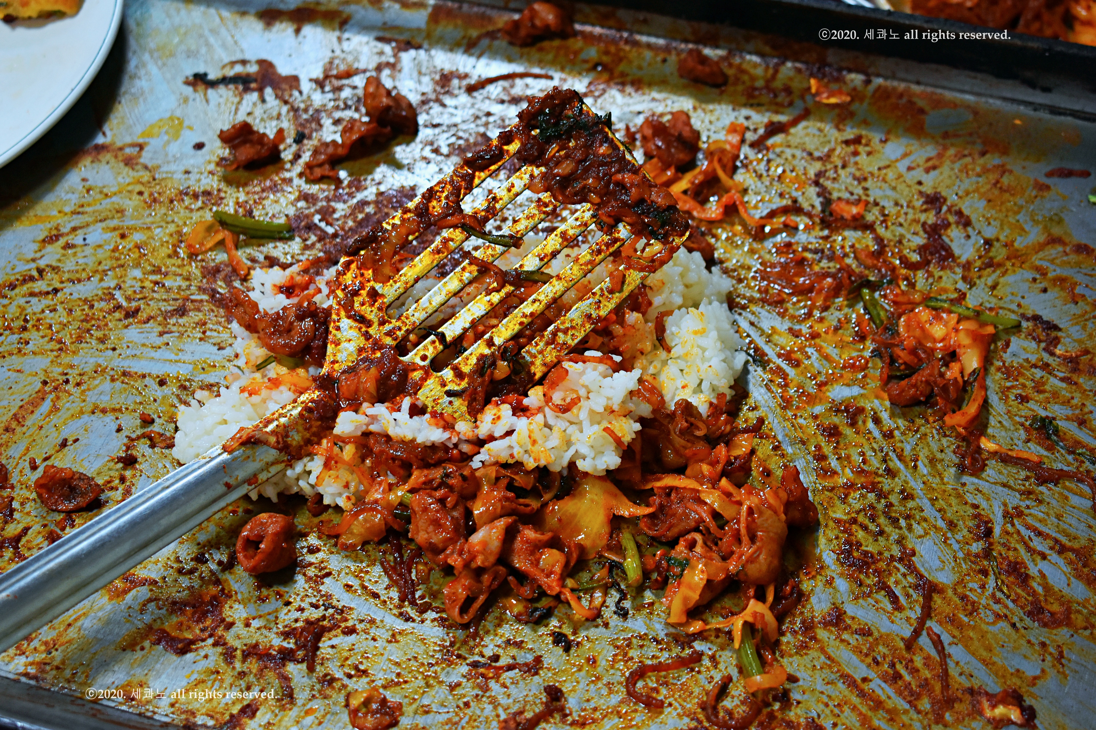앞 접시에 덜어 김치와 함께 먹어주기도 했다.