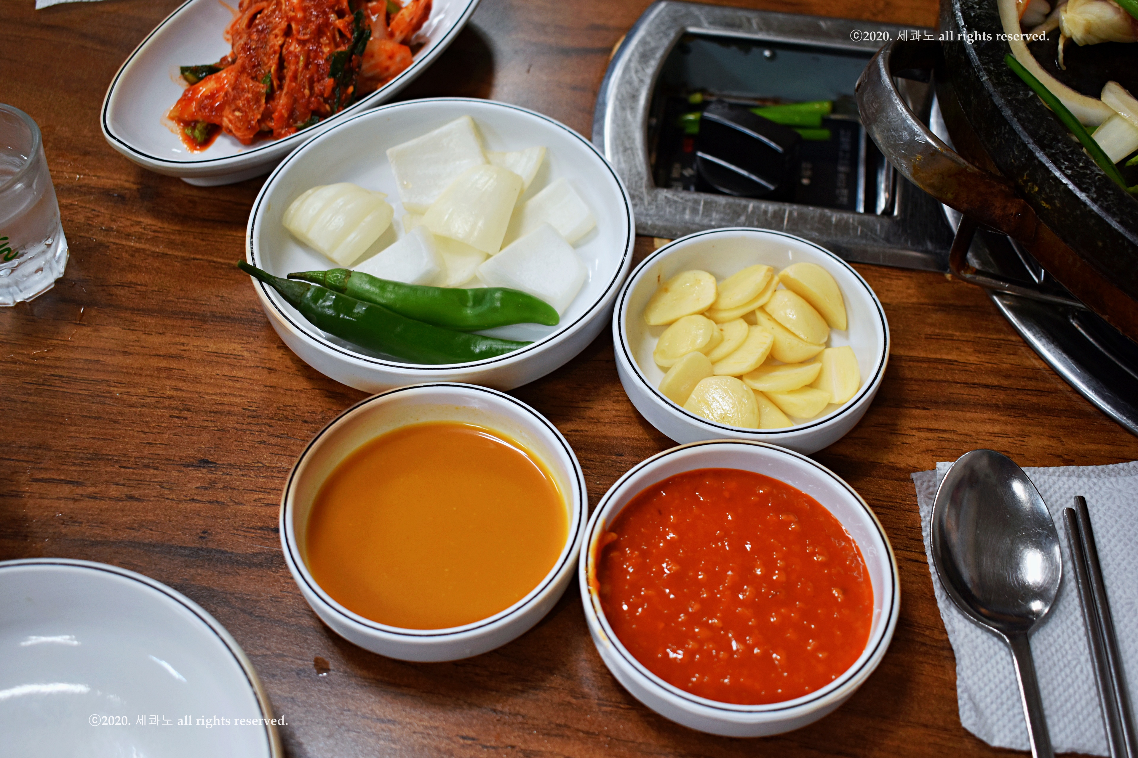일단 쌈 채소와 양념을 비롯해, 이러한 찬들이 있고
