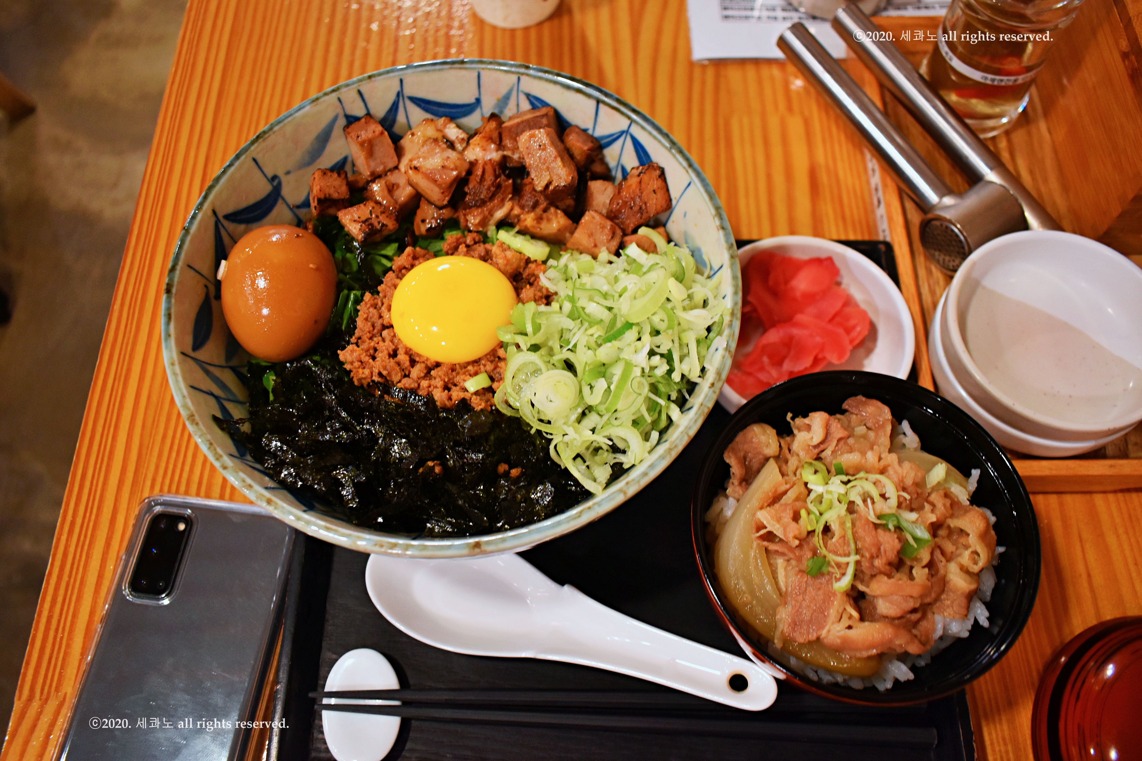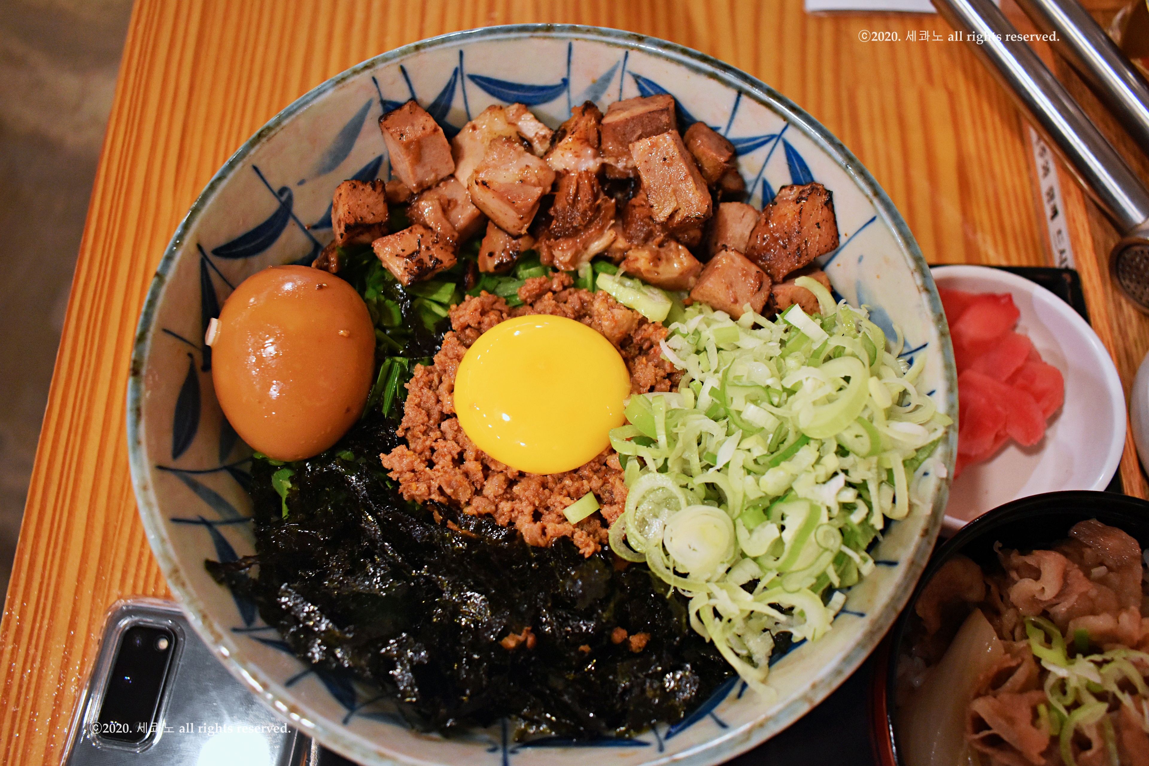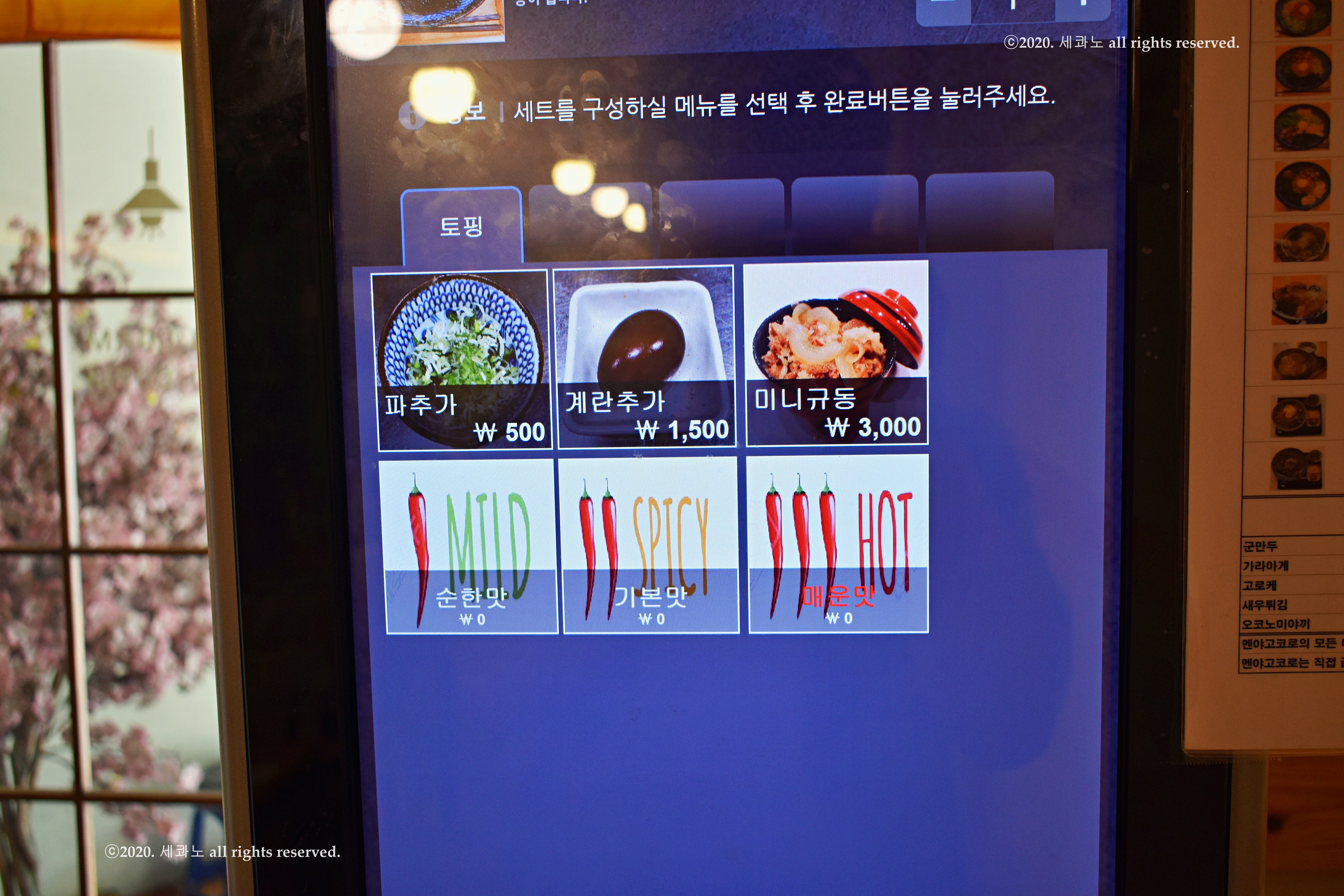 파 500원, 계란추가 1500원, 미니규동 3000원