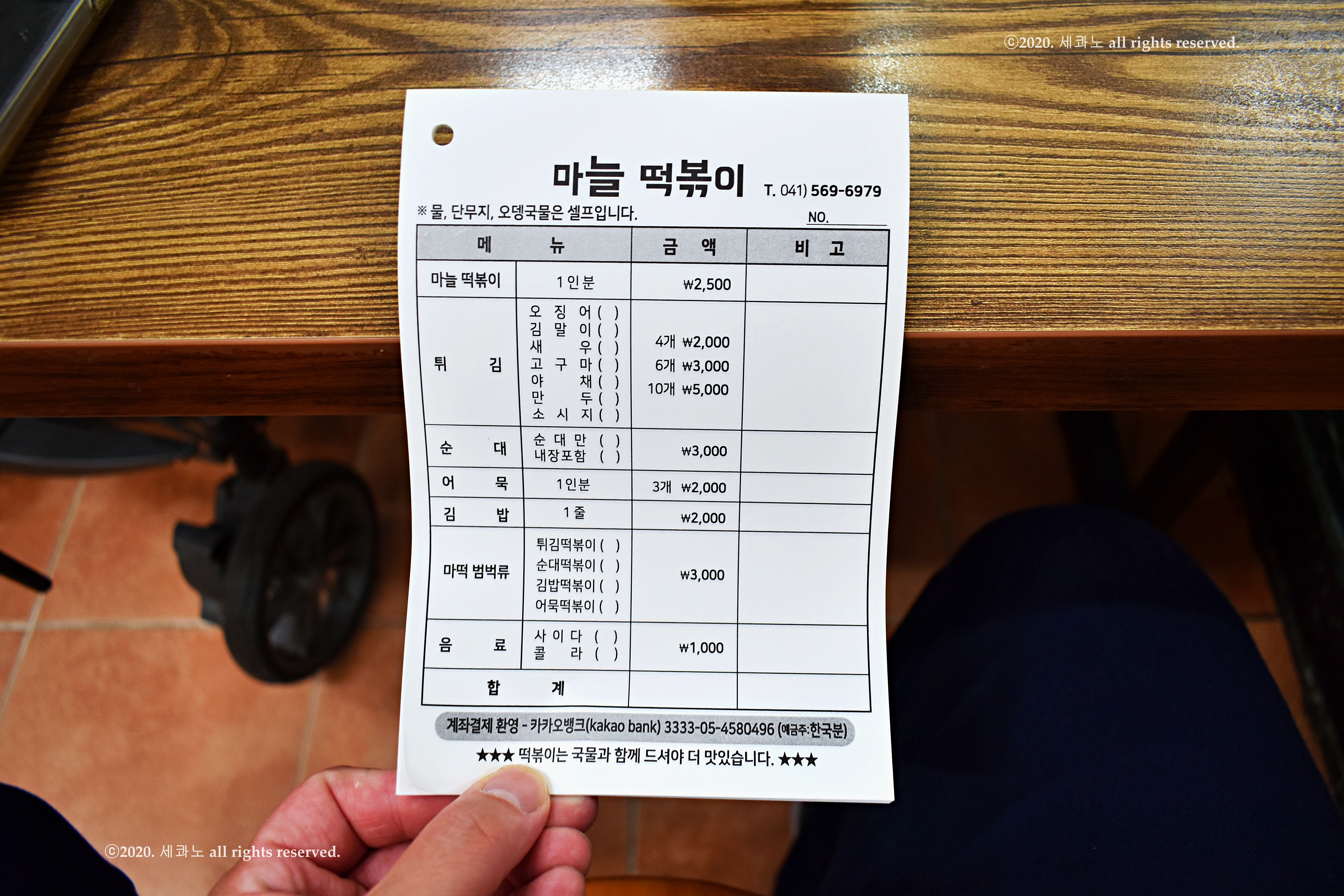 계좌 이체 가능하며 카카오페이, 제로페이 결제 가능