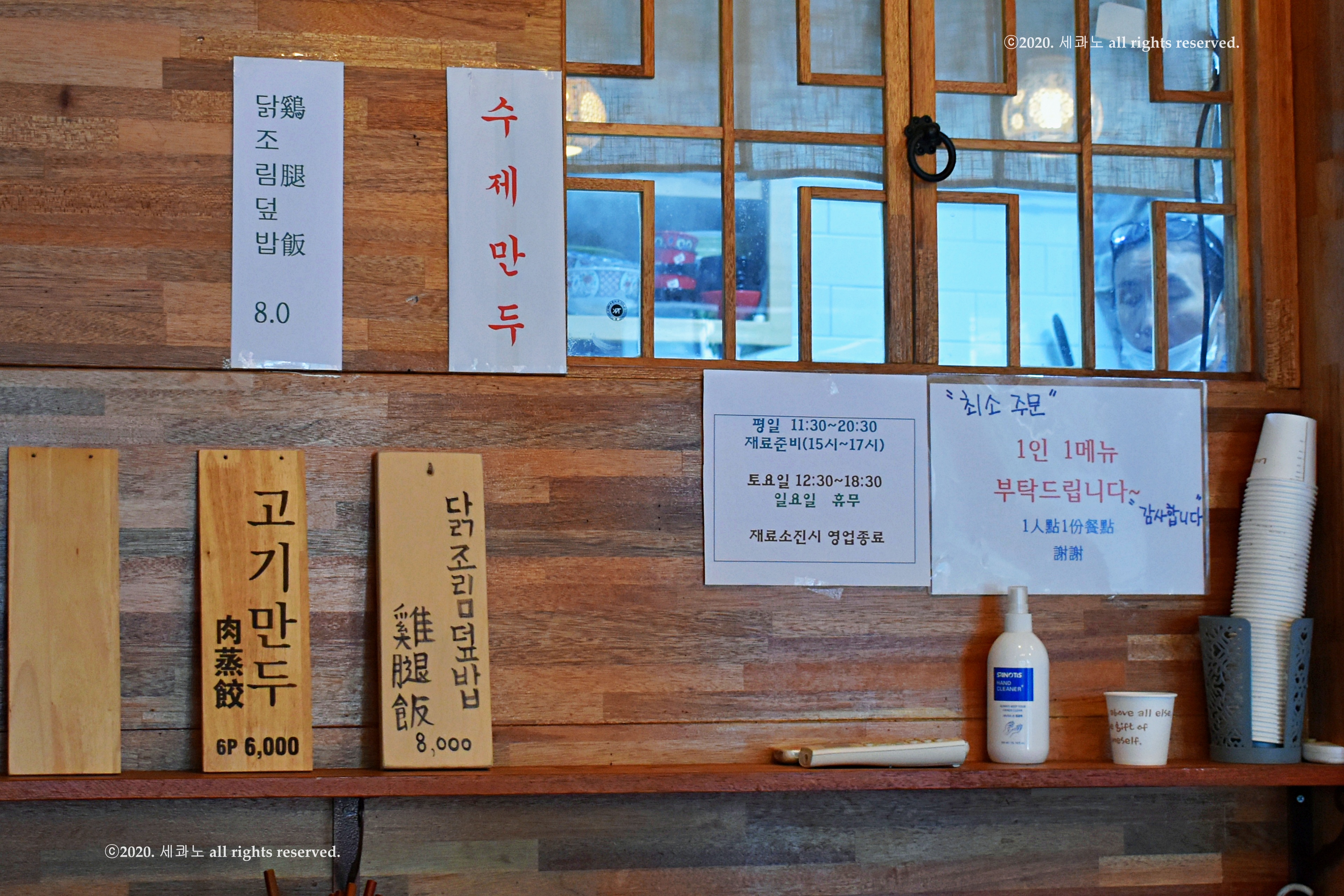 새우만두도 다 떨어져서 메뉴판 뒤집어 두었었음