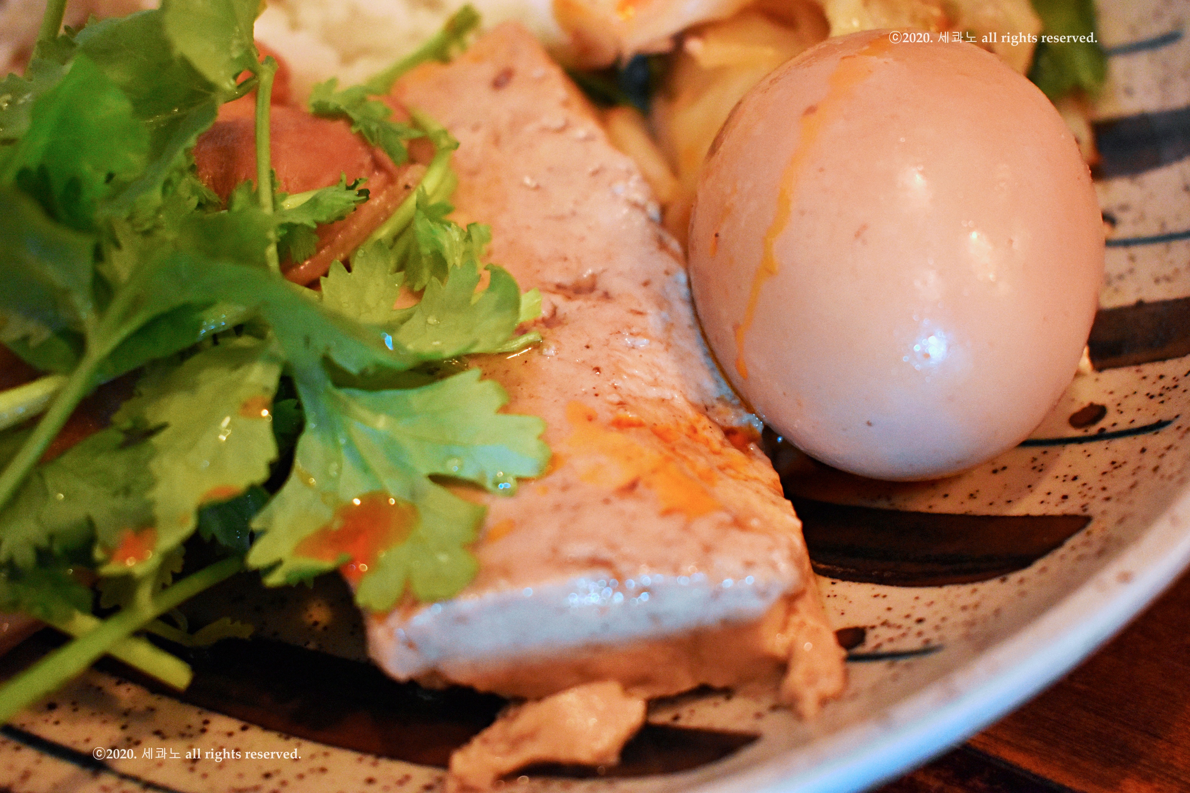 삶은 계란장조림과 함께 양배추 야채볶음,
