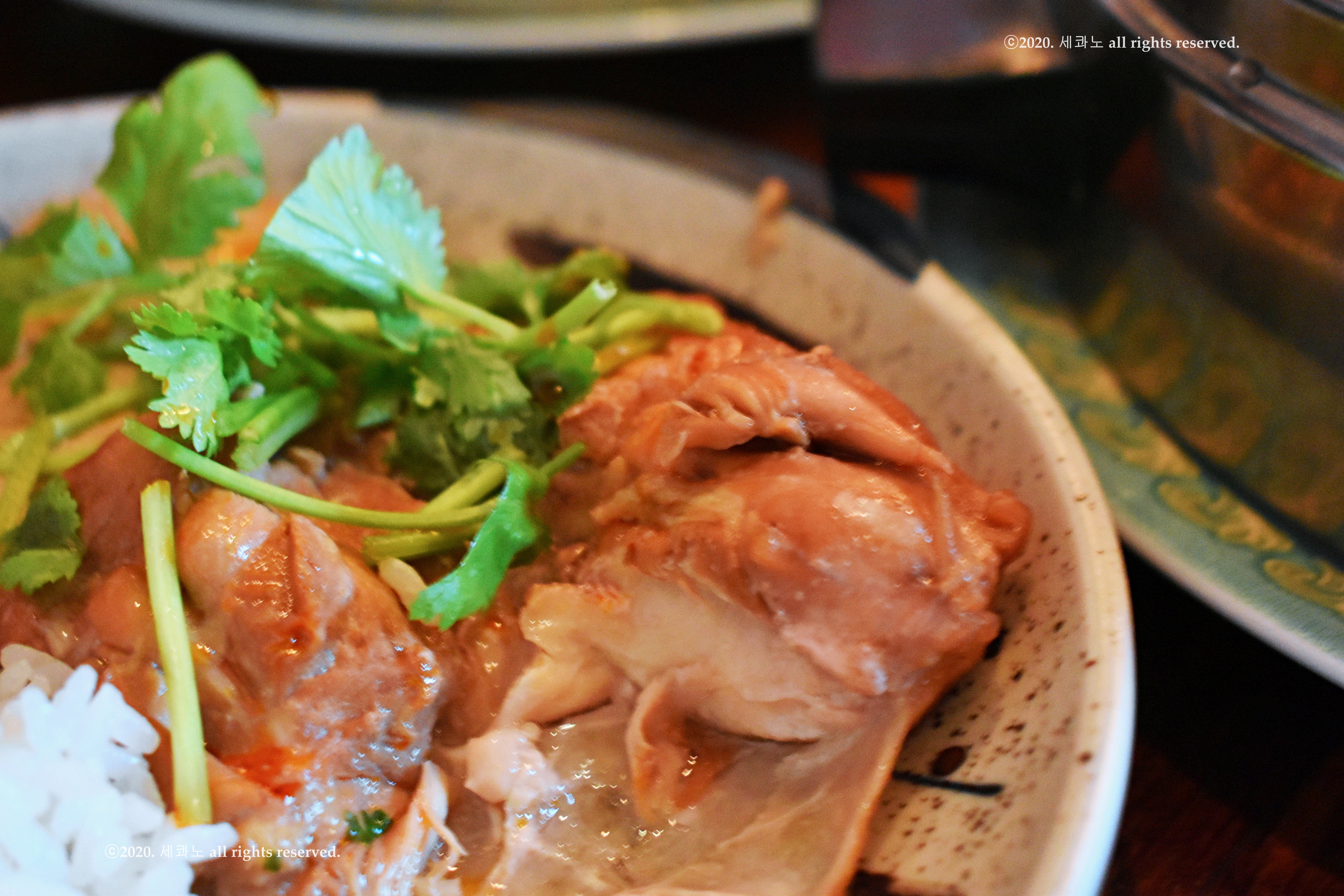 그리고 짭쪼름한 간장과 신선한 닭을 밥 위에 얹은
