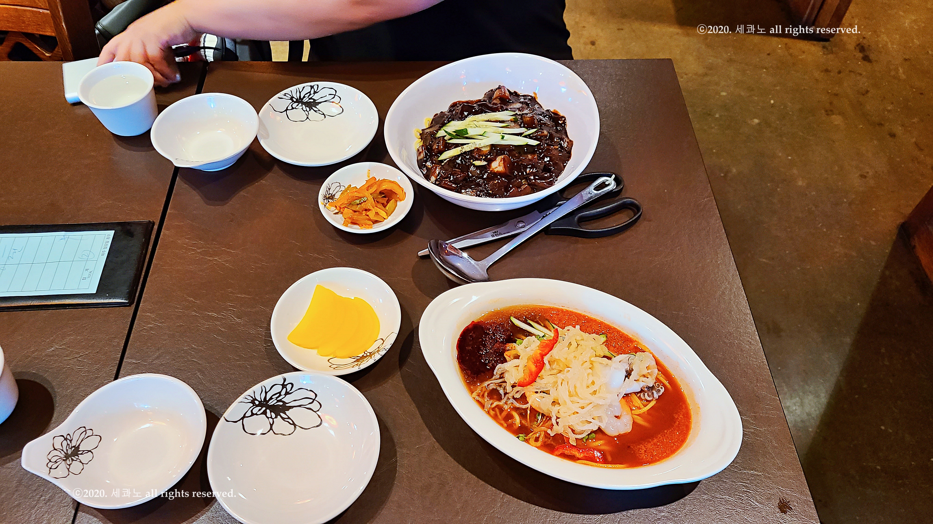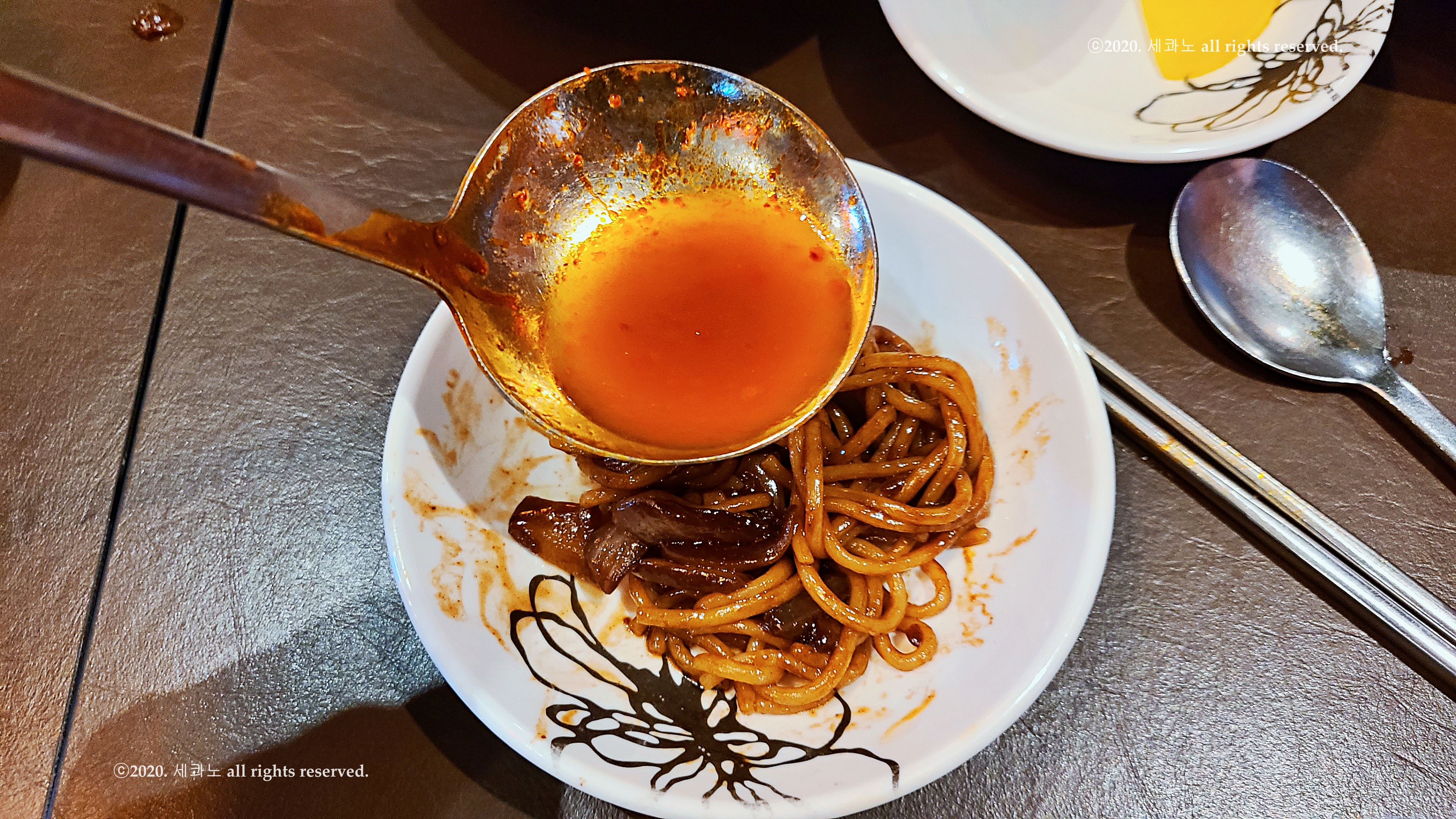 짜장면 위에 냉짬뽕 국물 부어서 먹은 것이다.