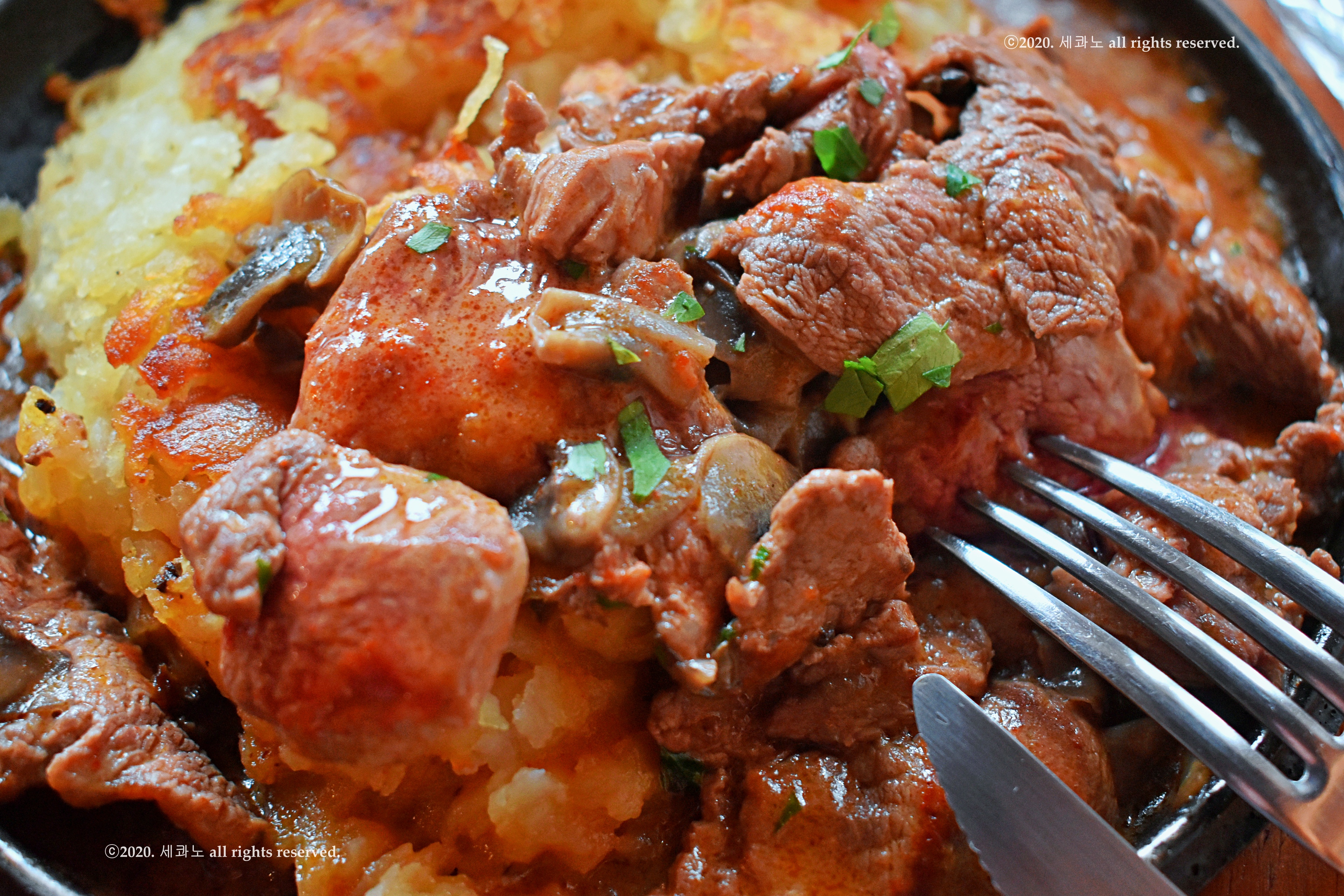 취리히 스타일의 버섯 크림소스 송아지 안심 뢰스티 20000원을 주문하였고