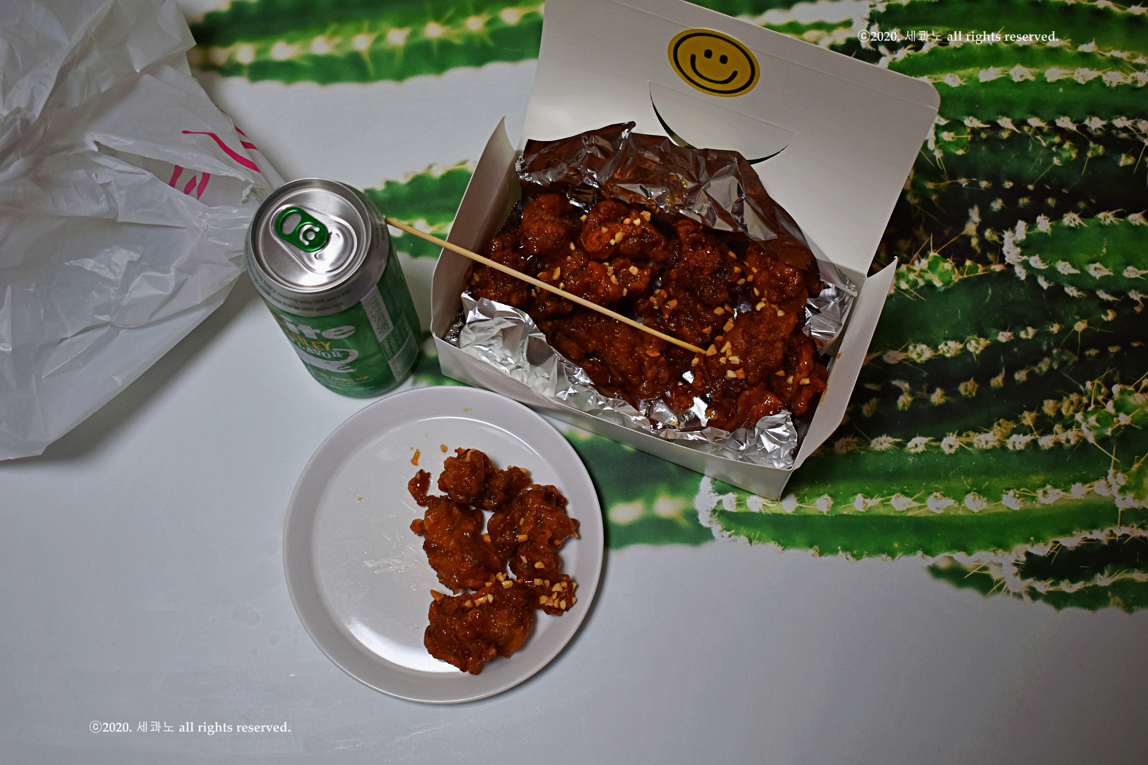 달콤과 매콤은 사라지고 마늘간장 닭강정만 남았다.