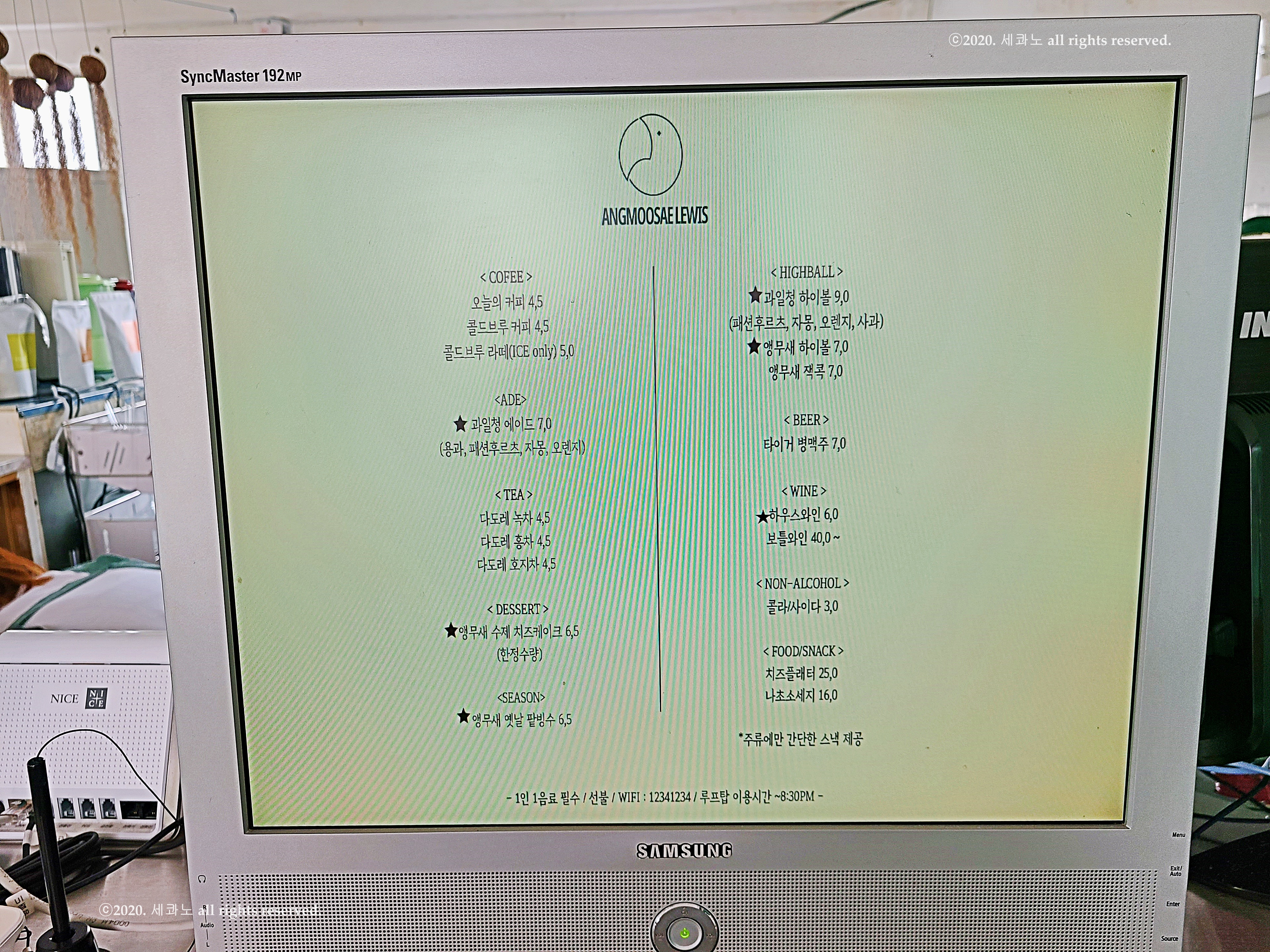 성수동 카페 앵무새루이스 메뉴판과 가격