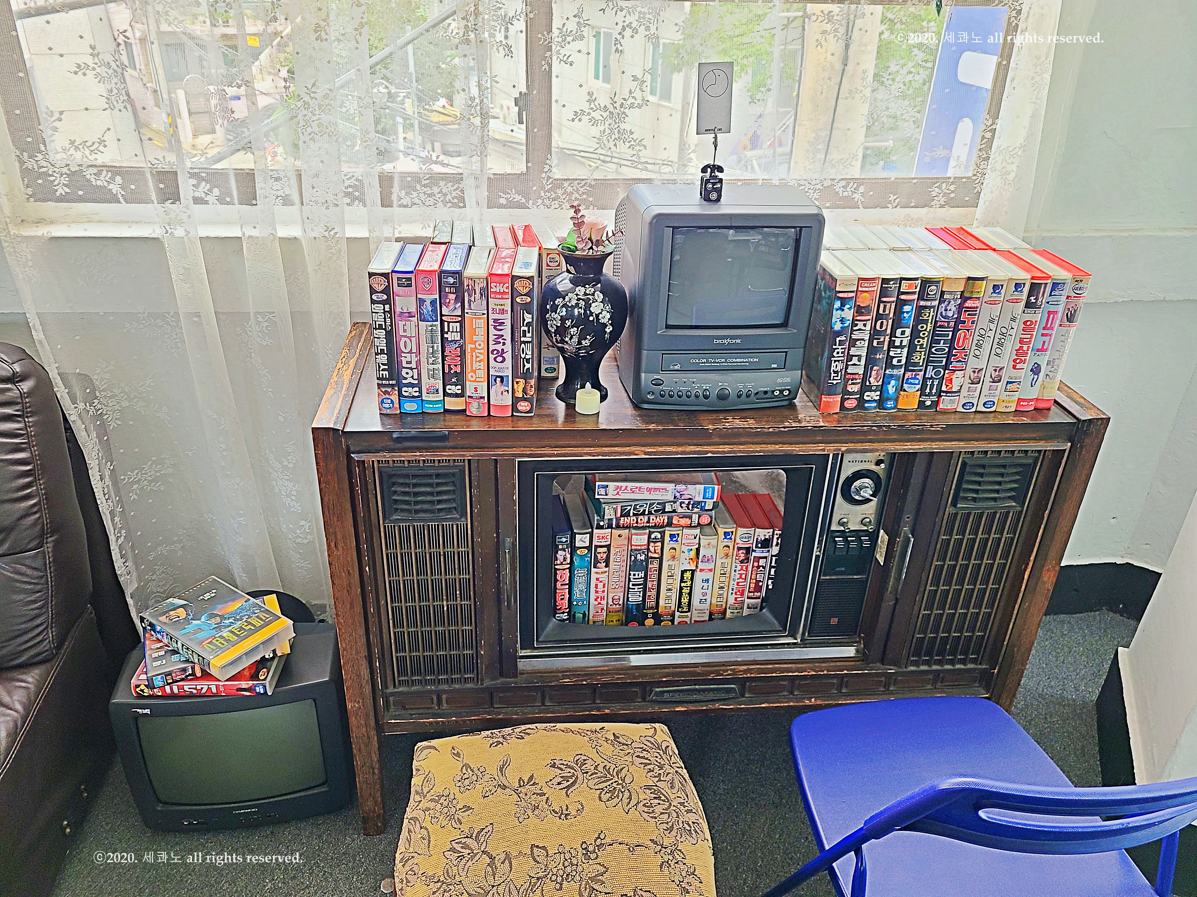 옛날 비디오와 그것을 재생할 수 있는 텔레비전