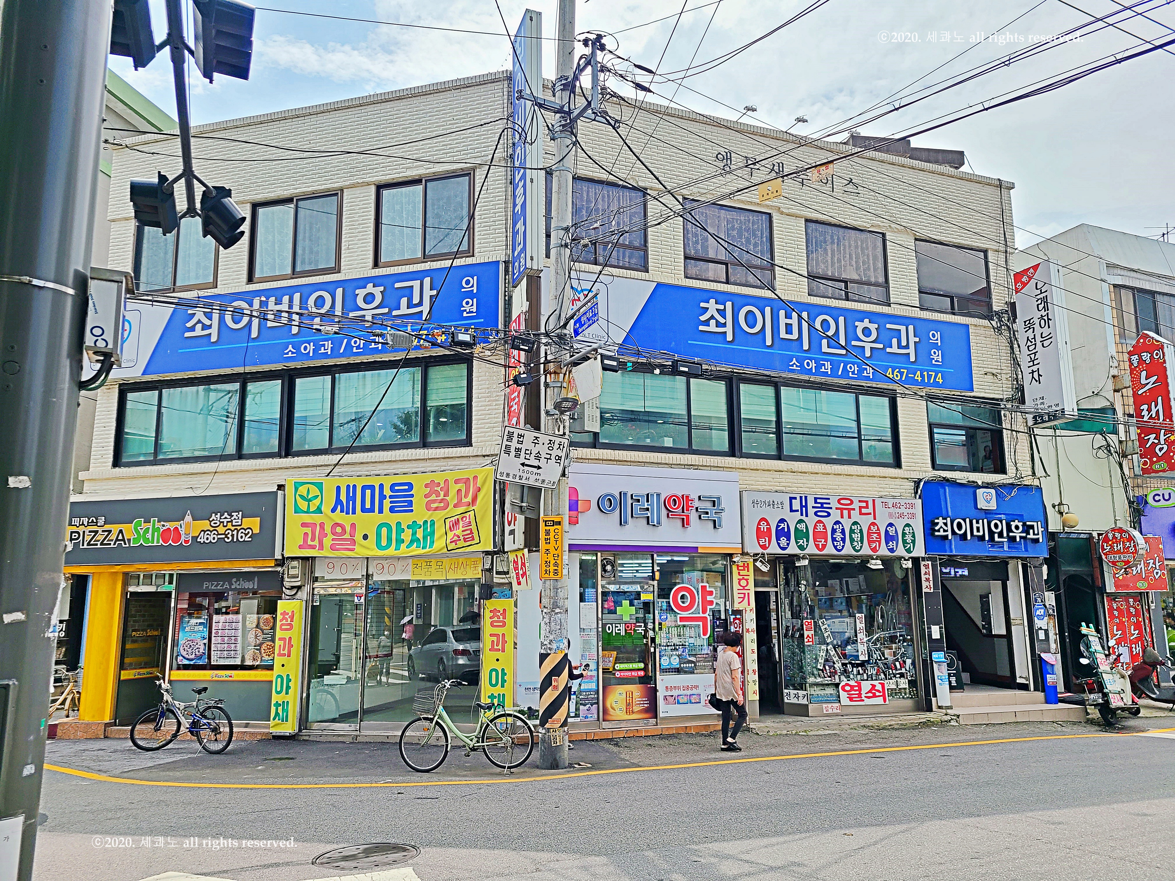 옆에 최이비인후과라 되어 있는 통로, 계단
