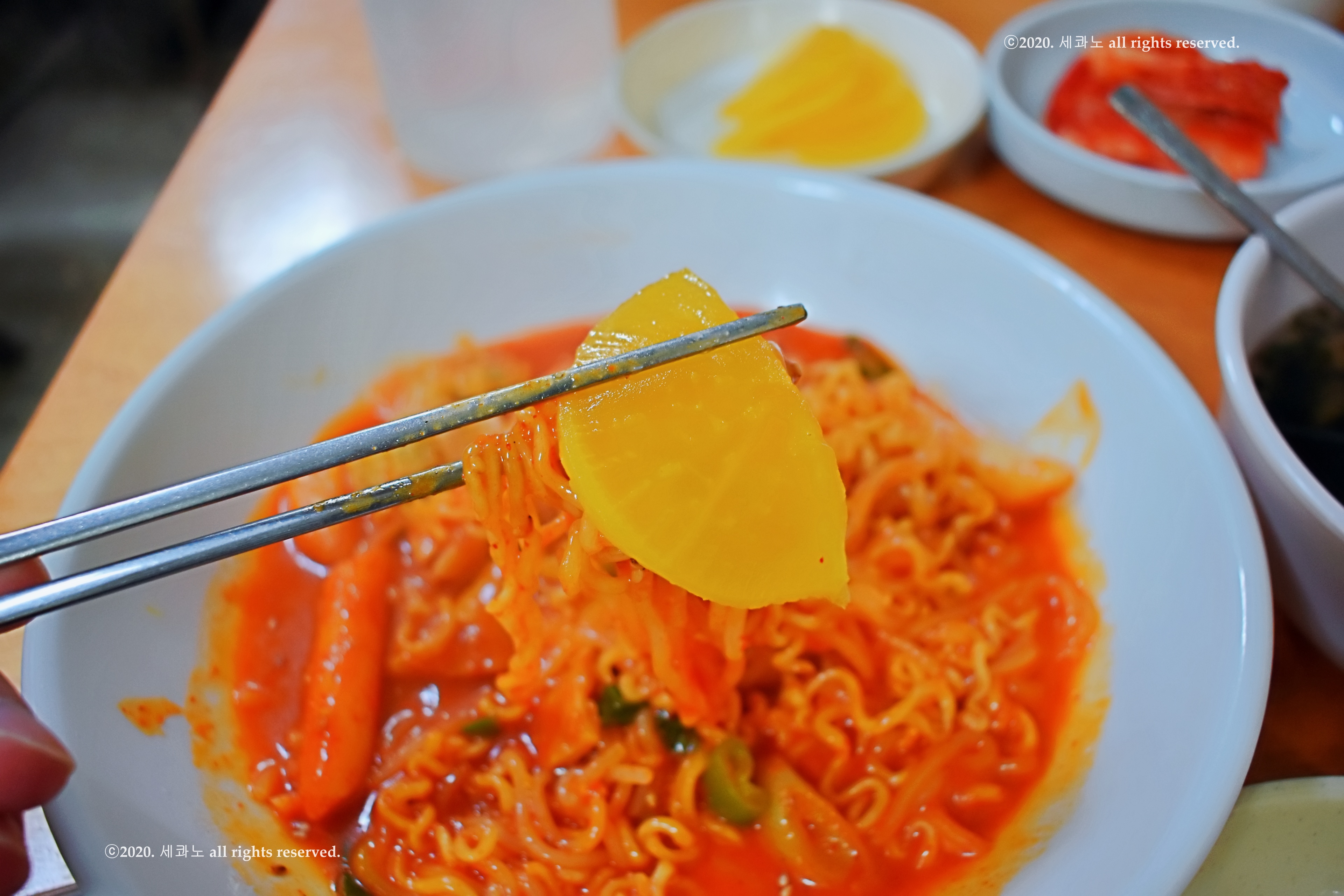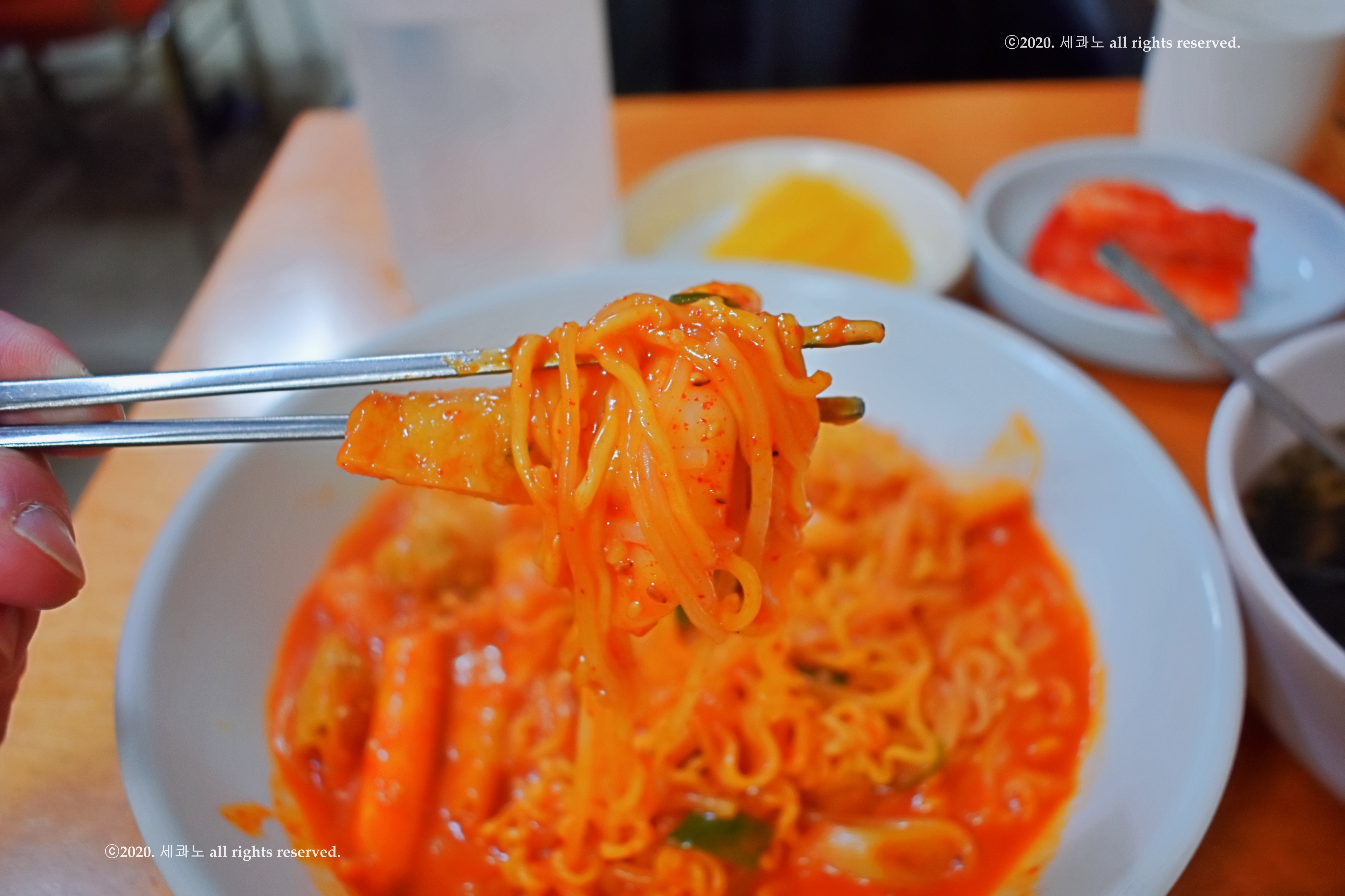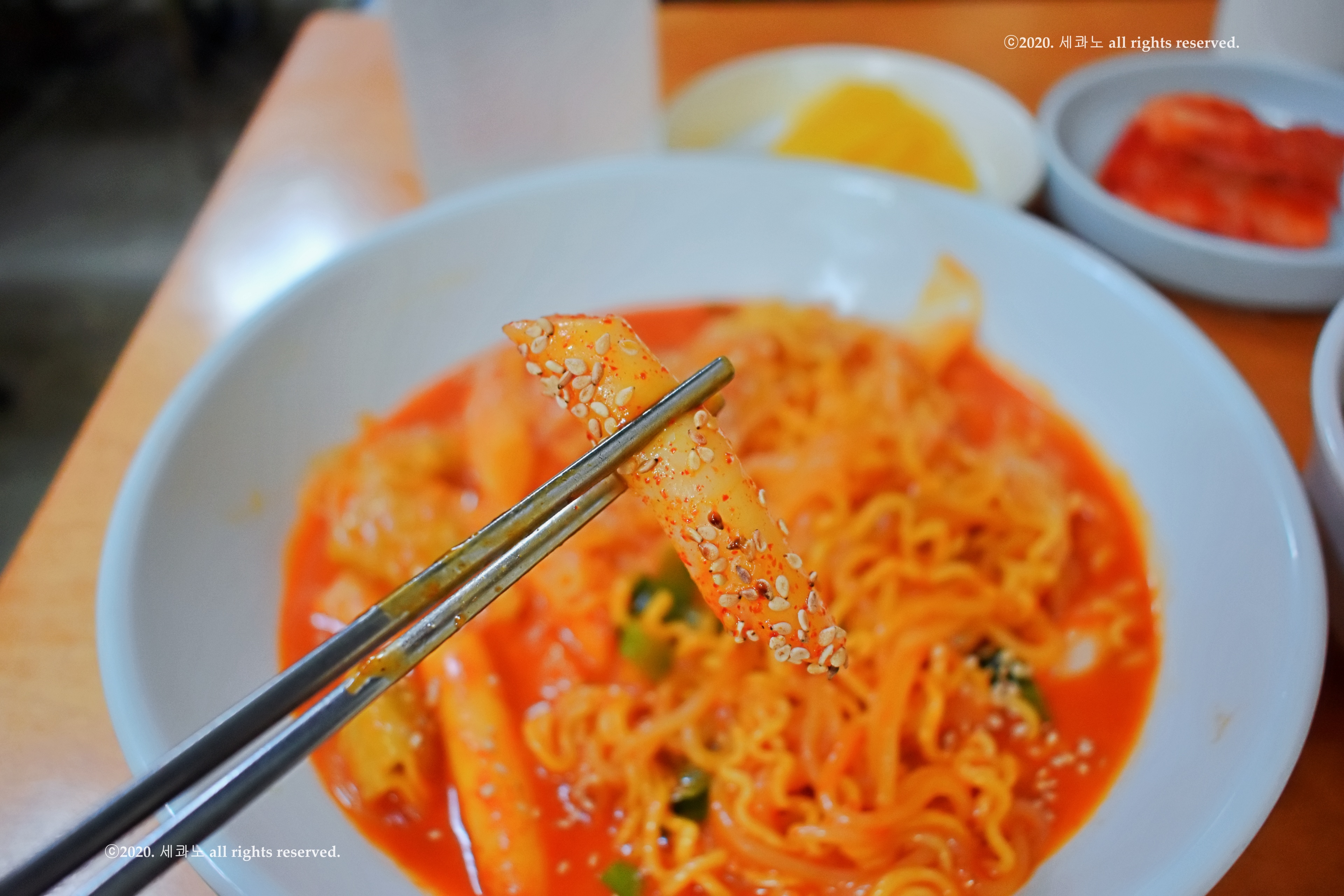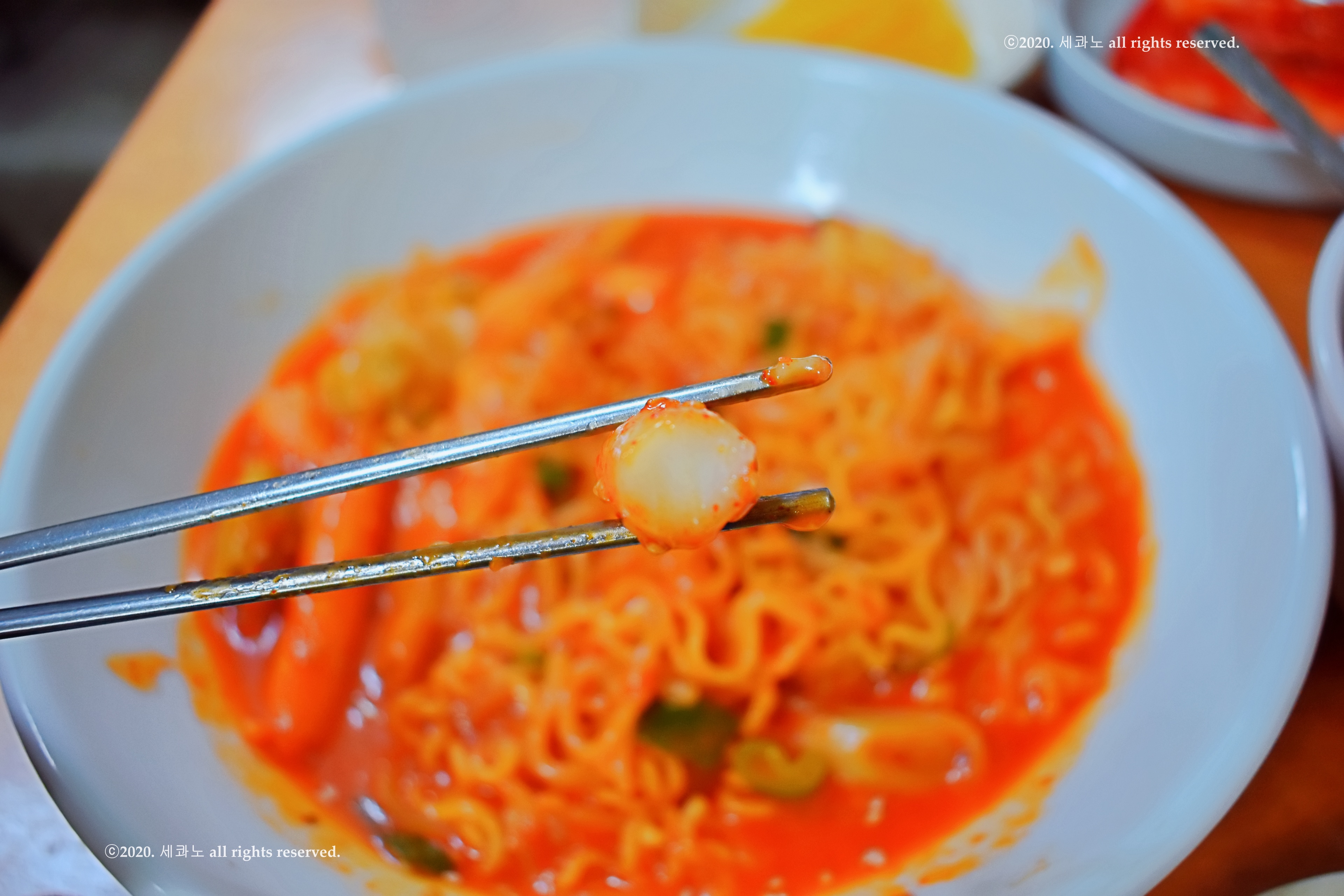 라면과 떡, 어묵을 한 번에 같이 먹어주고