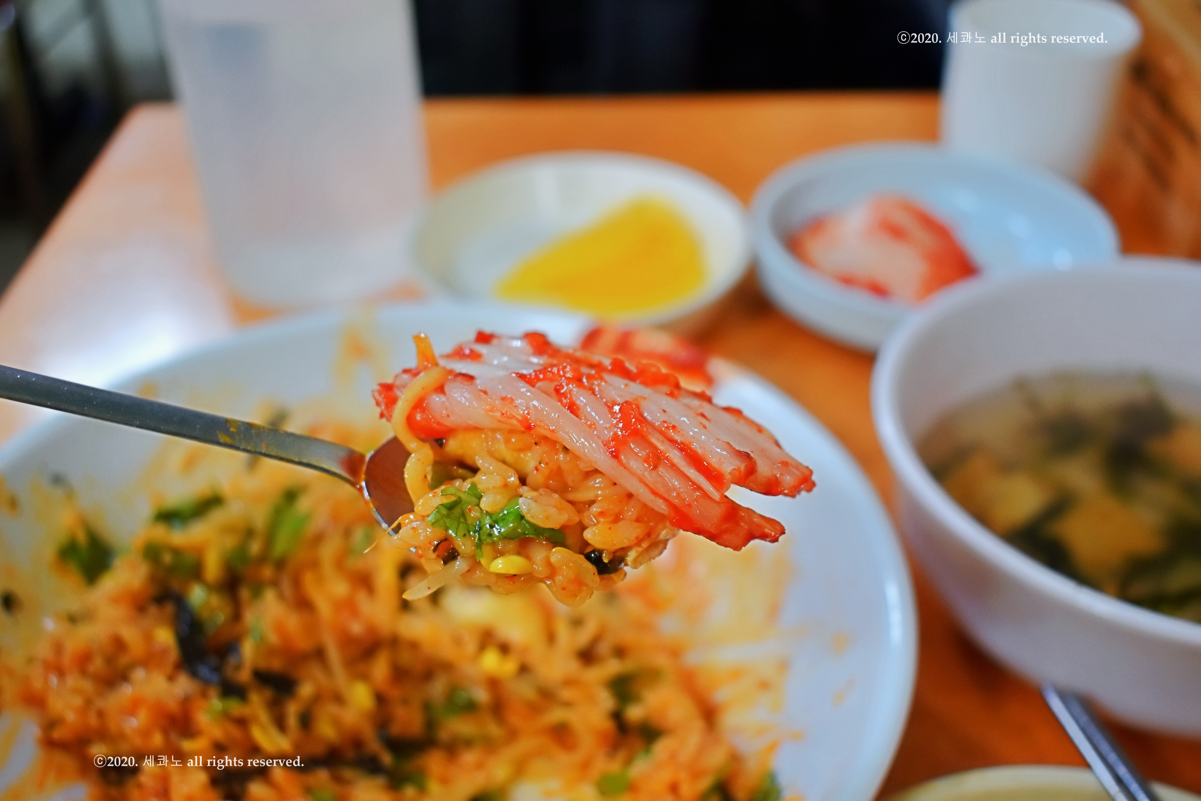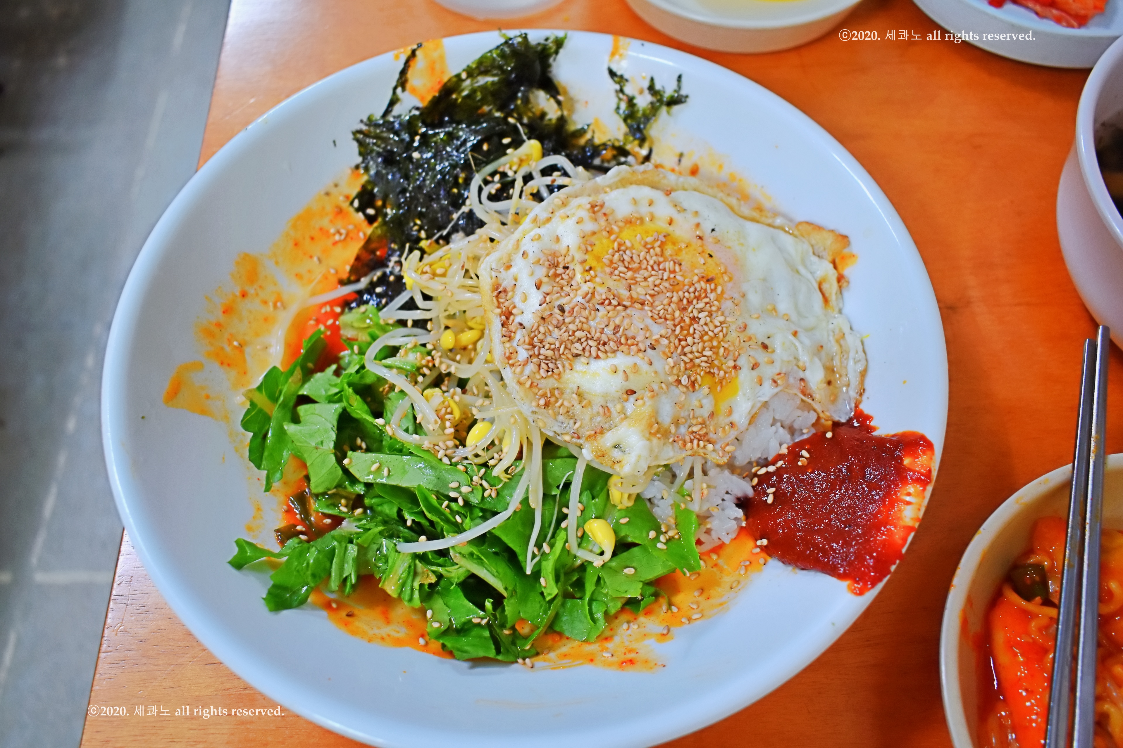 테이블에서 비비는 이것은 비빔밥이 맞다.