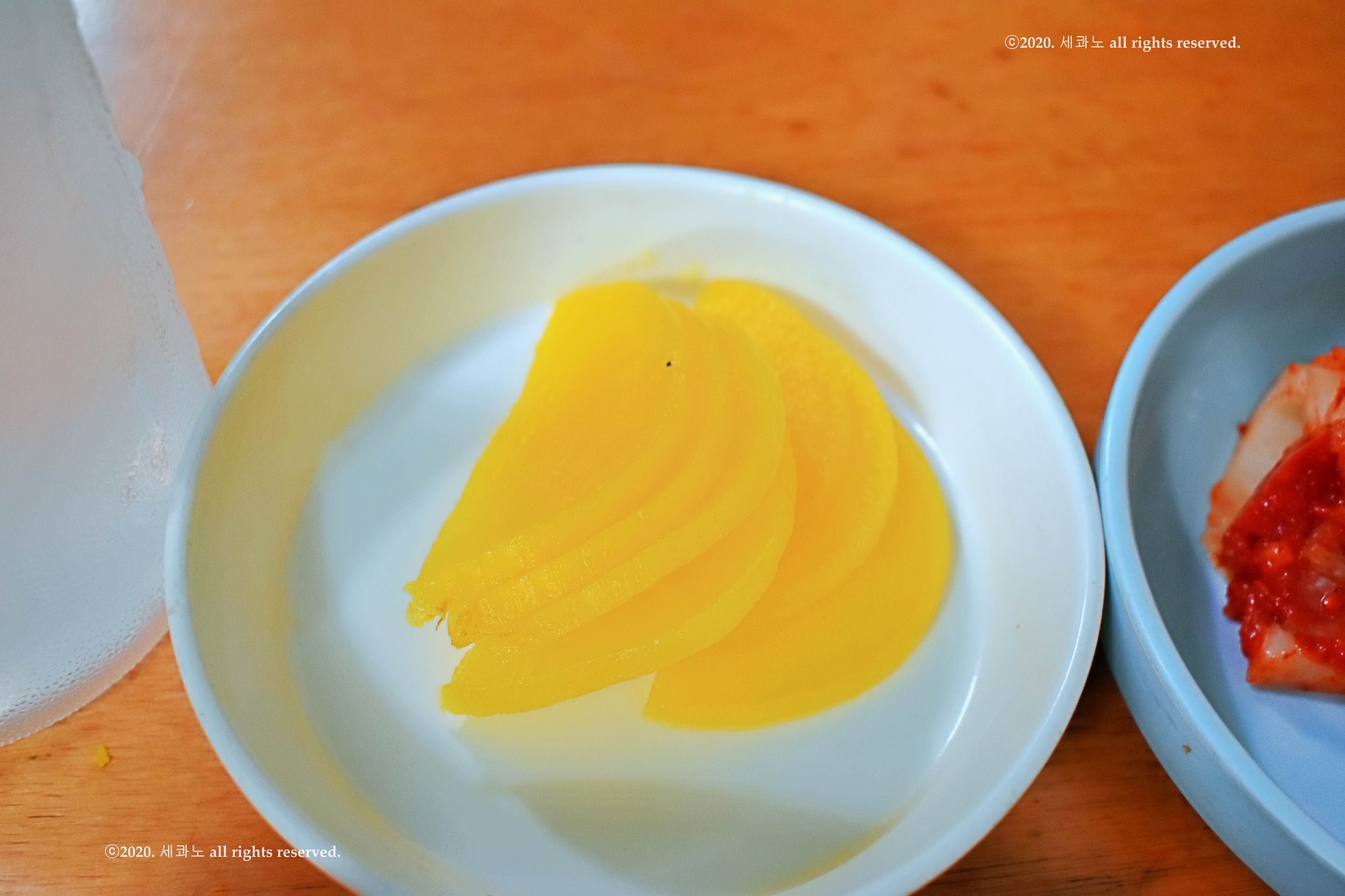 김치와 같이 먹는 것보다 맛이 더 좋았다.
