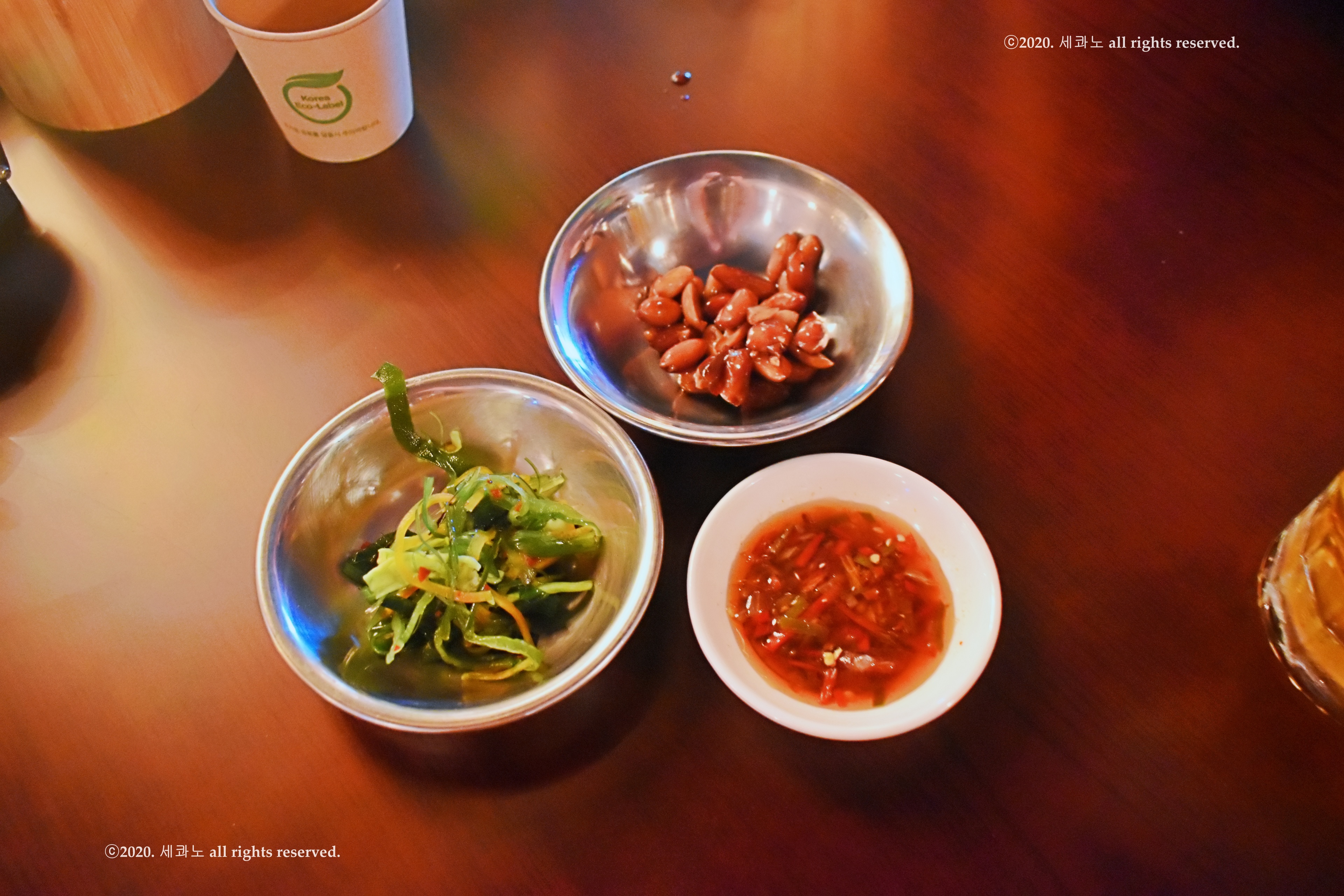 반찬으로 땅콩 볶음과 미역줄기가 나왔고