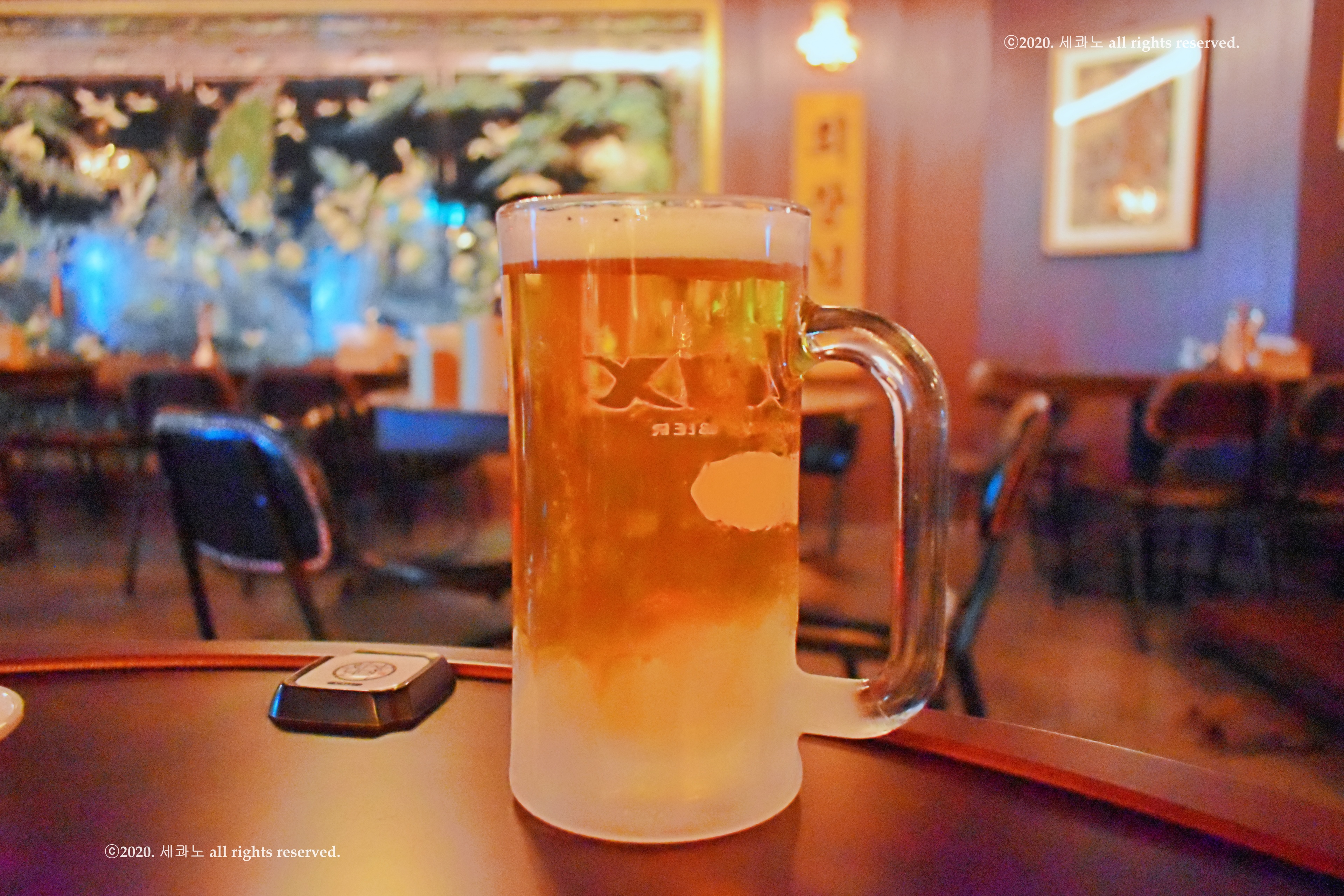 샹들리에를 배경으로 맥주 사진 찍어 보았다.