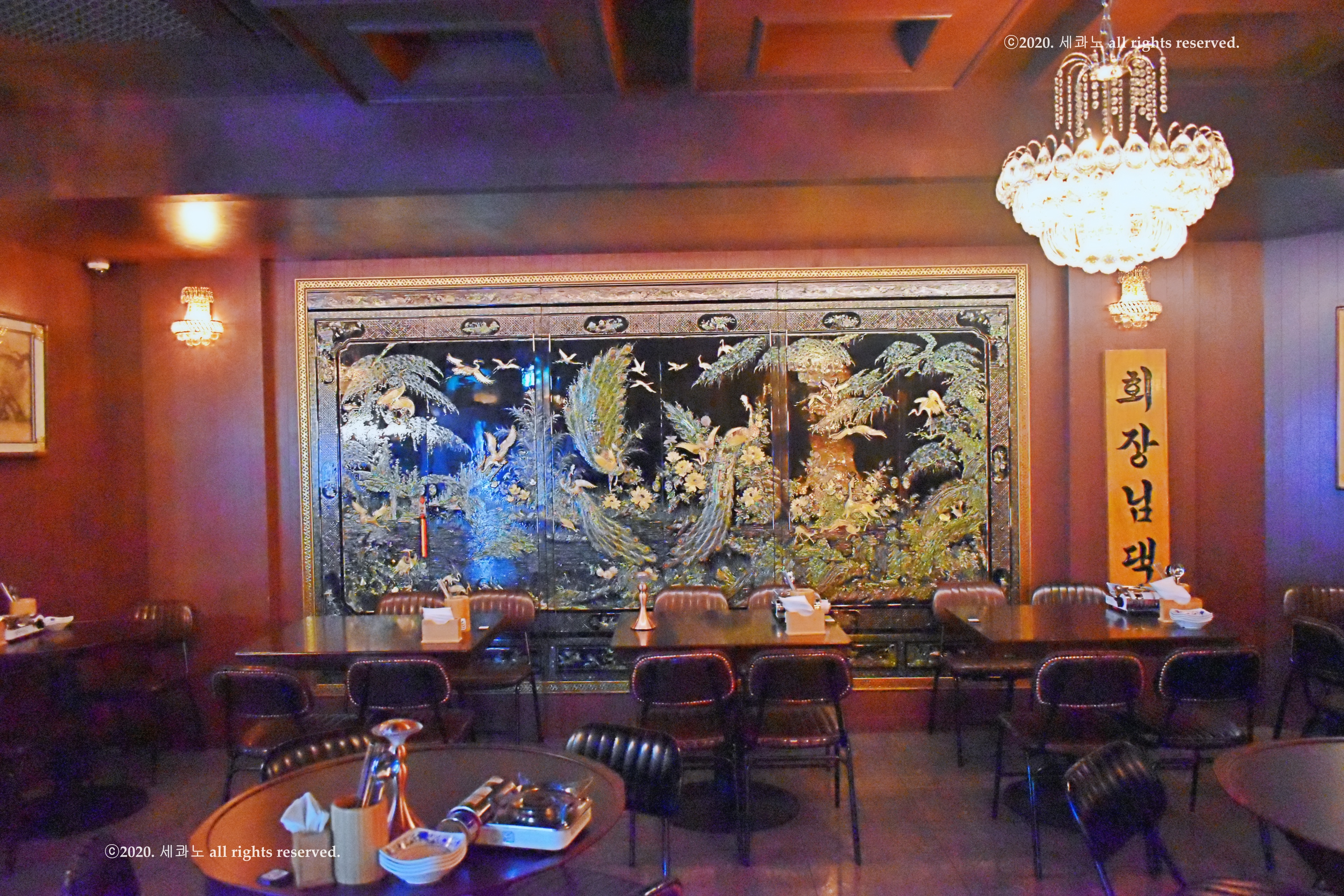 지미 유는 나전칠기 장과 화려한 샹들리에로 꾸며진