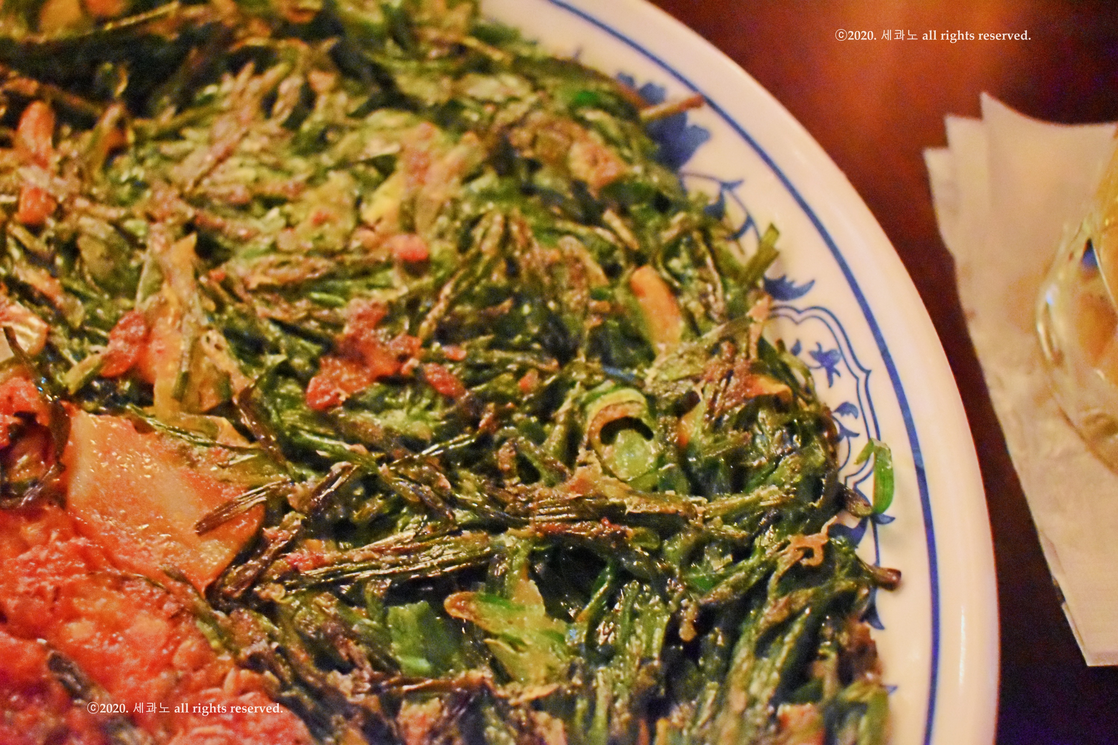 반찬으로 땅콩 볶음과 미역줄기가 나왔고