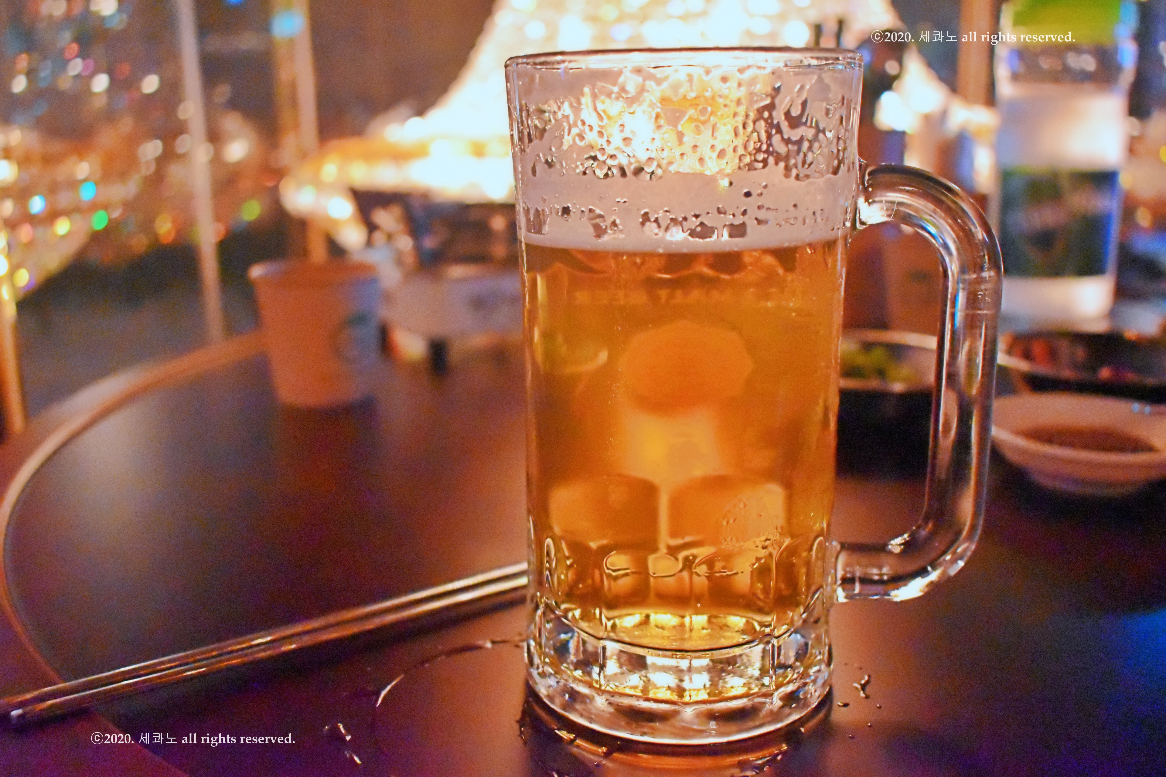 샹들리에를 배경으로 맥주 사진 찍어 보았다.