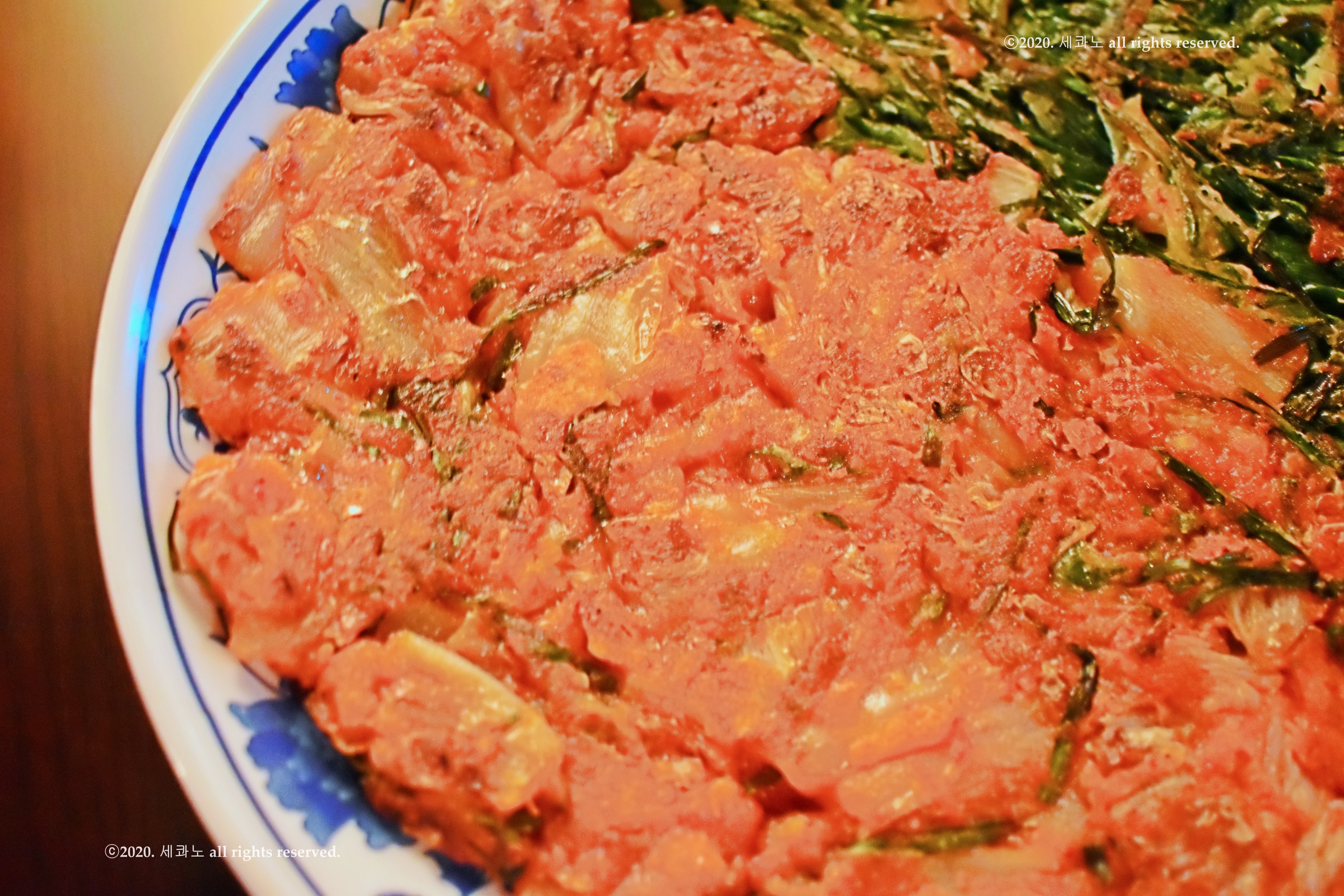 한쪽은 김치전이고 한쪽은 부추전인데