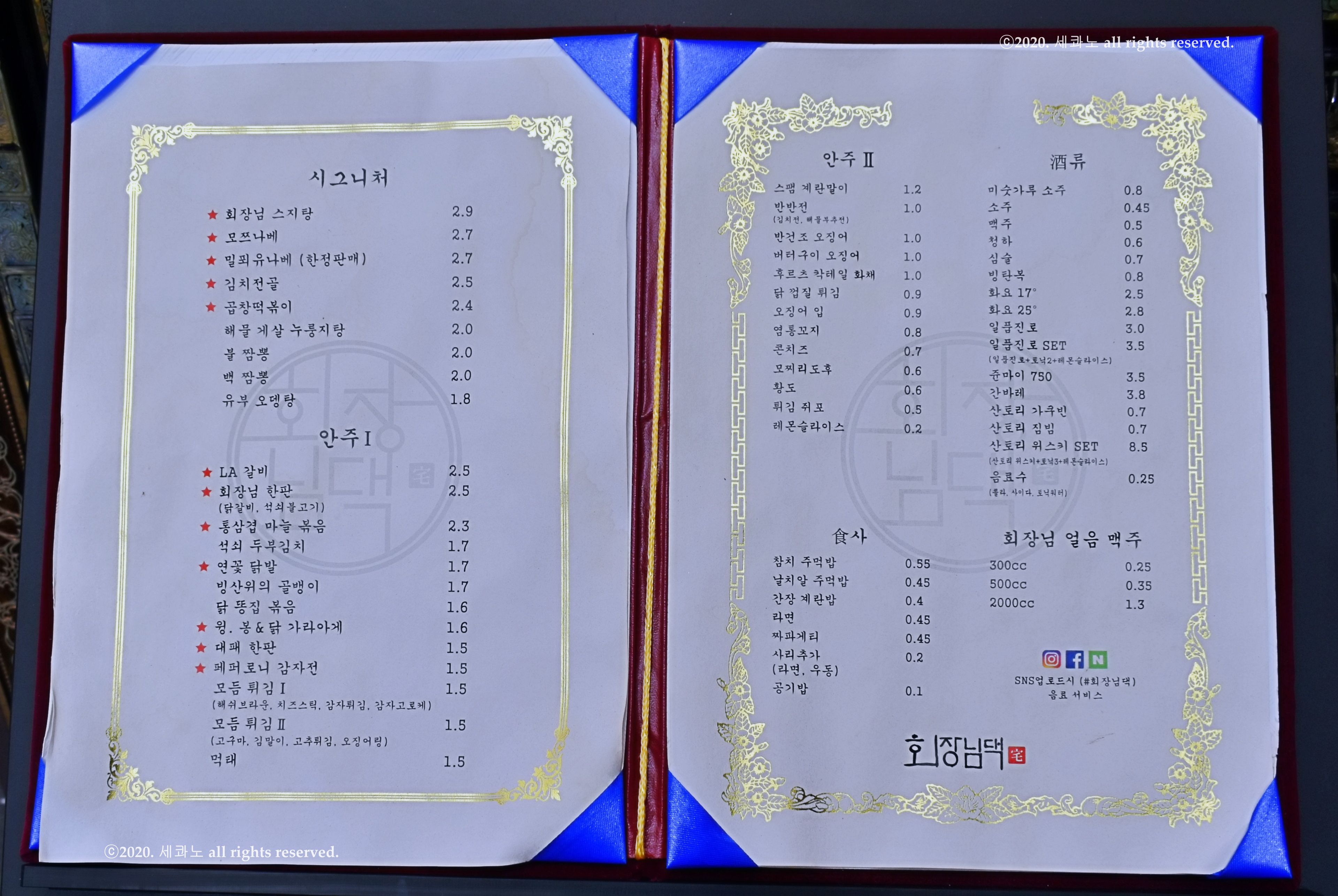 메뉴판과 가격