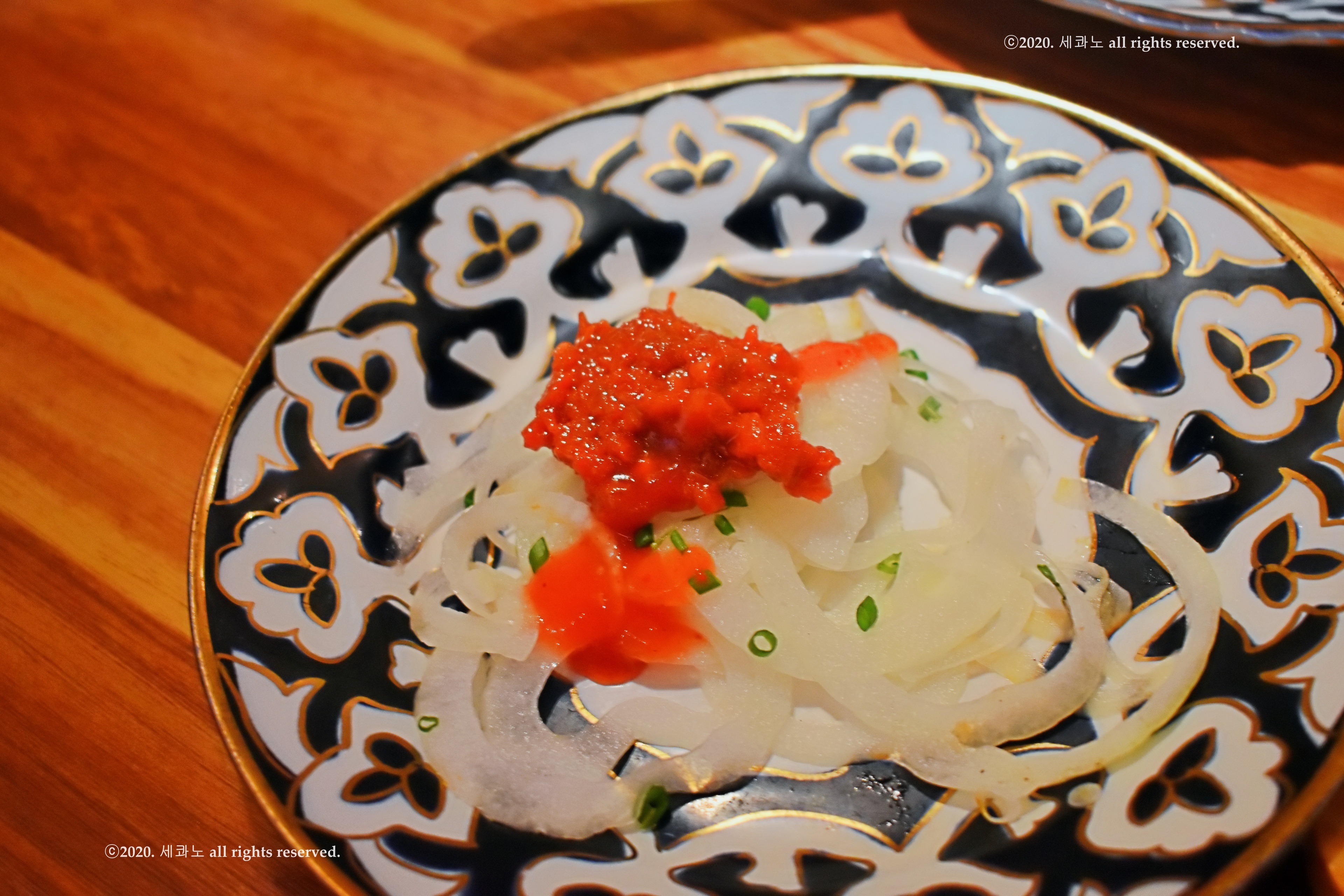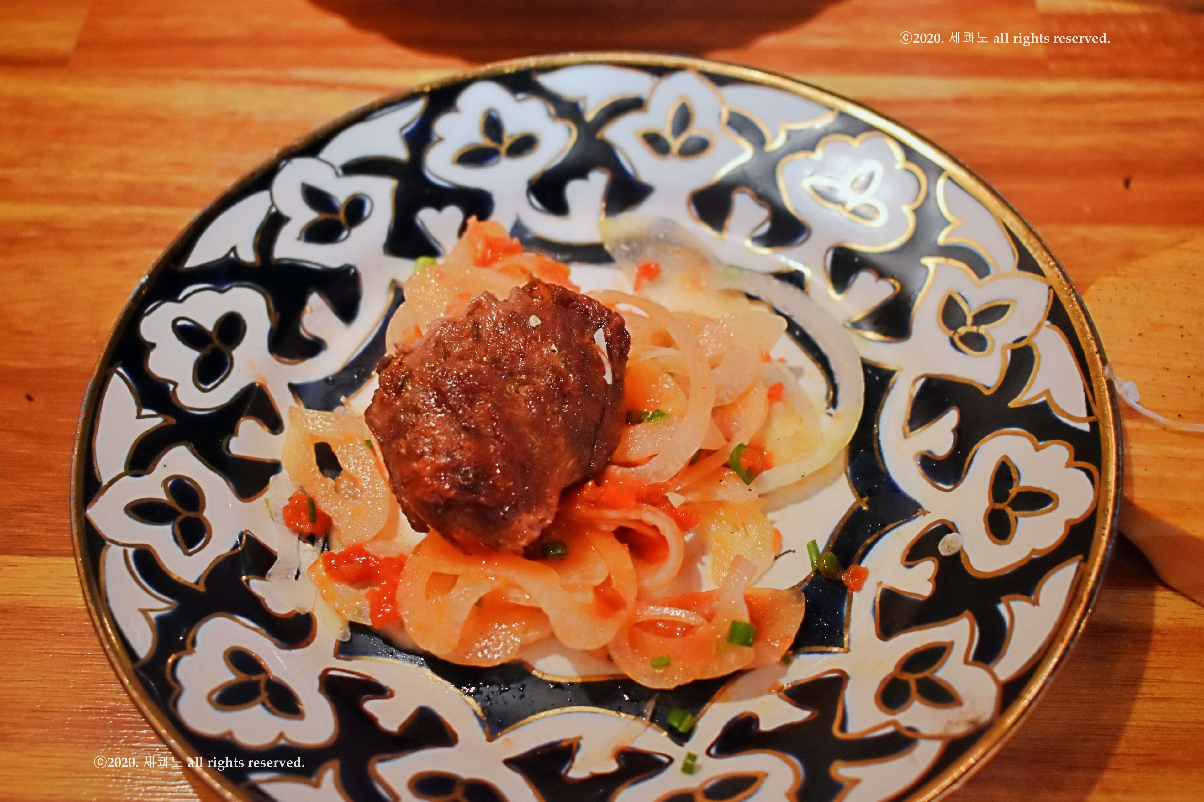 위에는 양파가 채 썰려 올라가 있었고