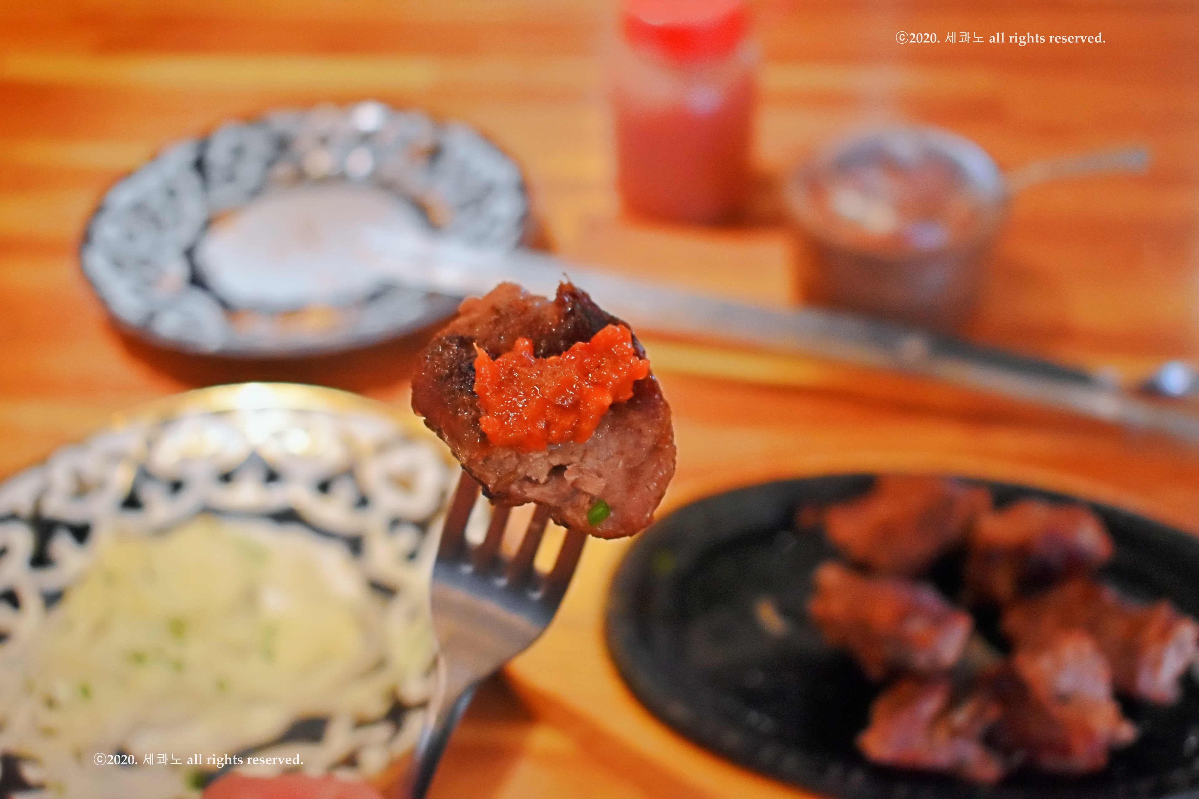 좌측은 원래부터 테이블에 있던 매운 소스고