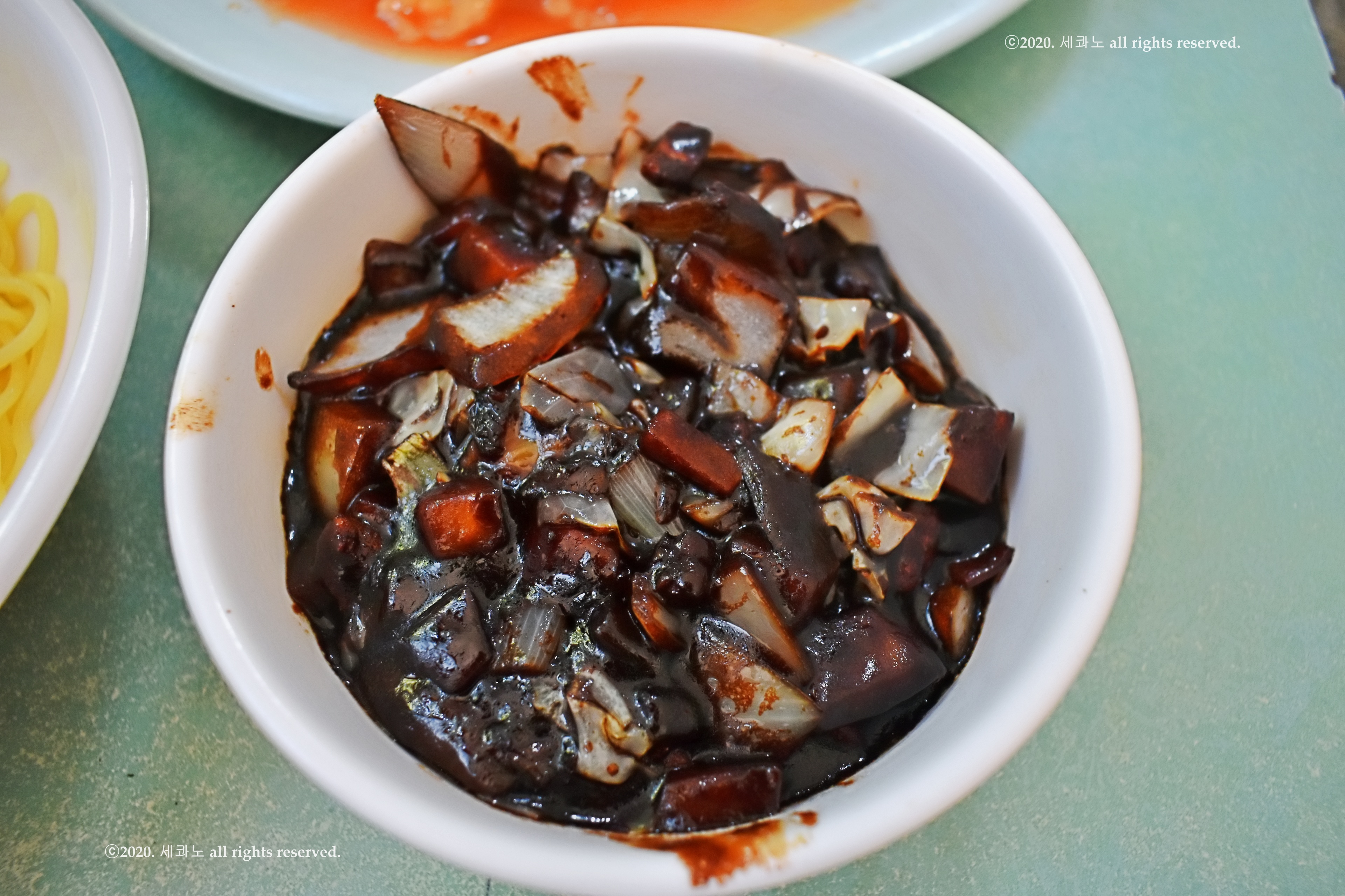 단무지, 양파, 춘장이 찬으로 나왔다