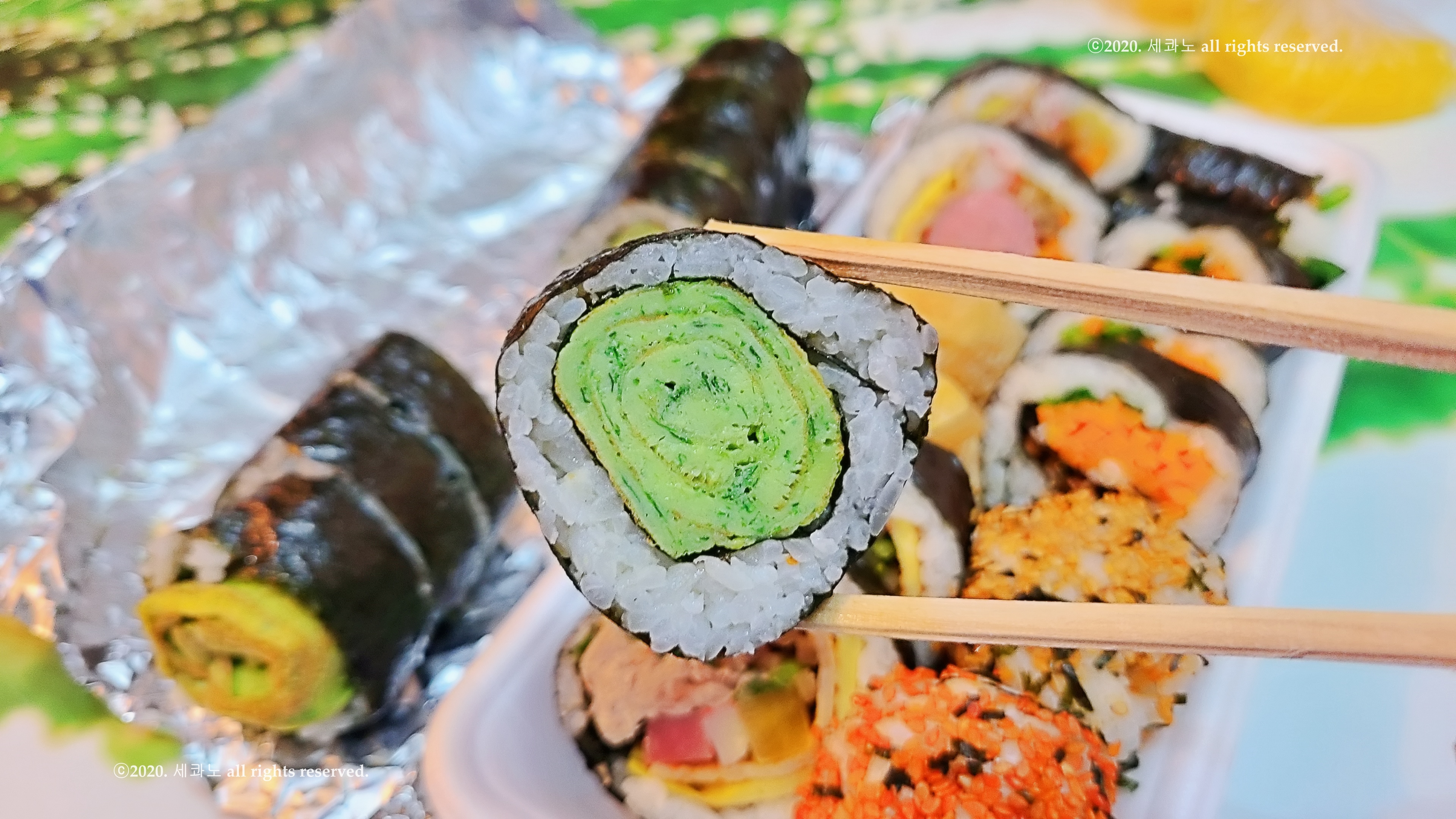 샛노란 빛깔이 아름다운 달걀지단 김밥까지.