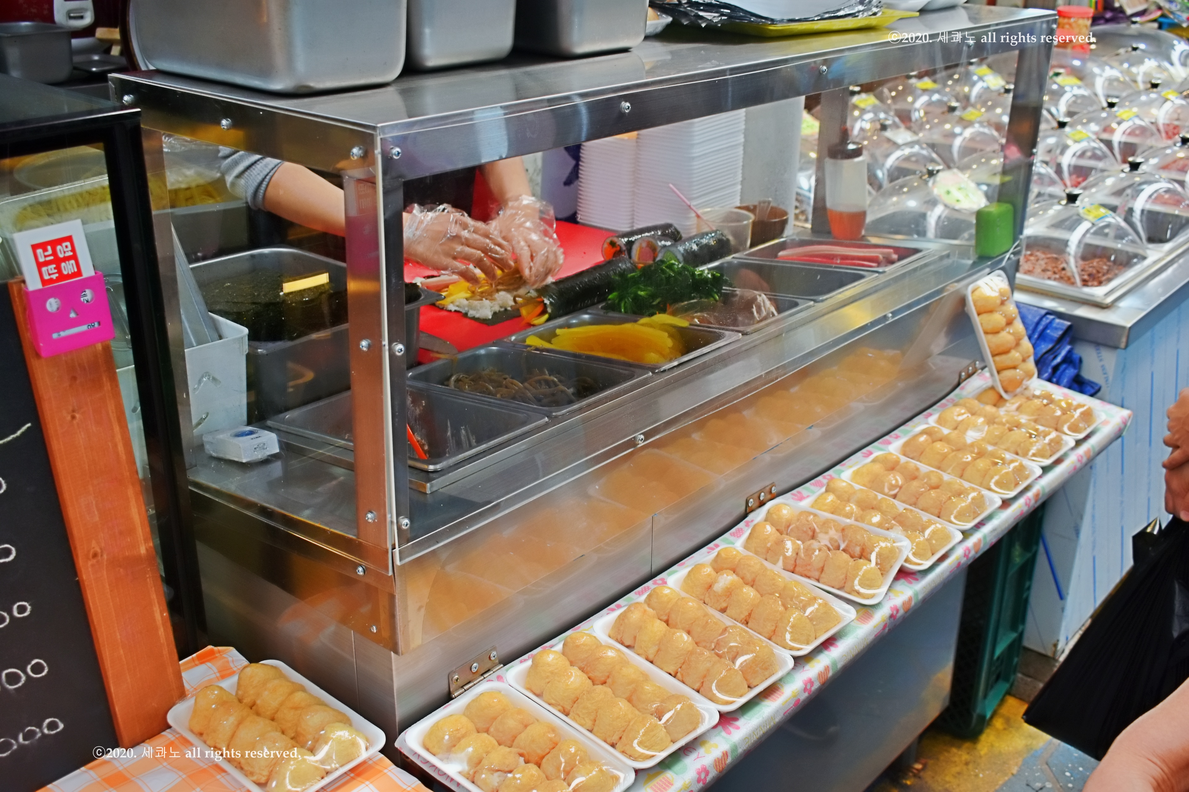 이곳에 형형색색의 김밥으로 사람들의 시선을 끄는 김밥집이 있다.