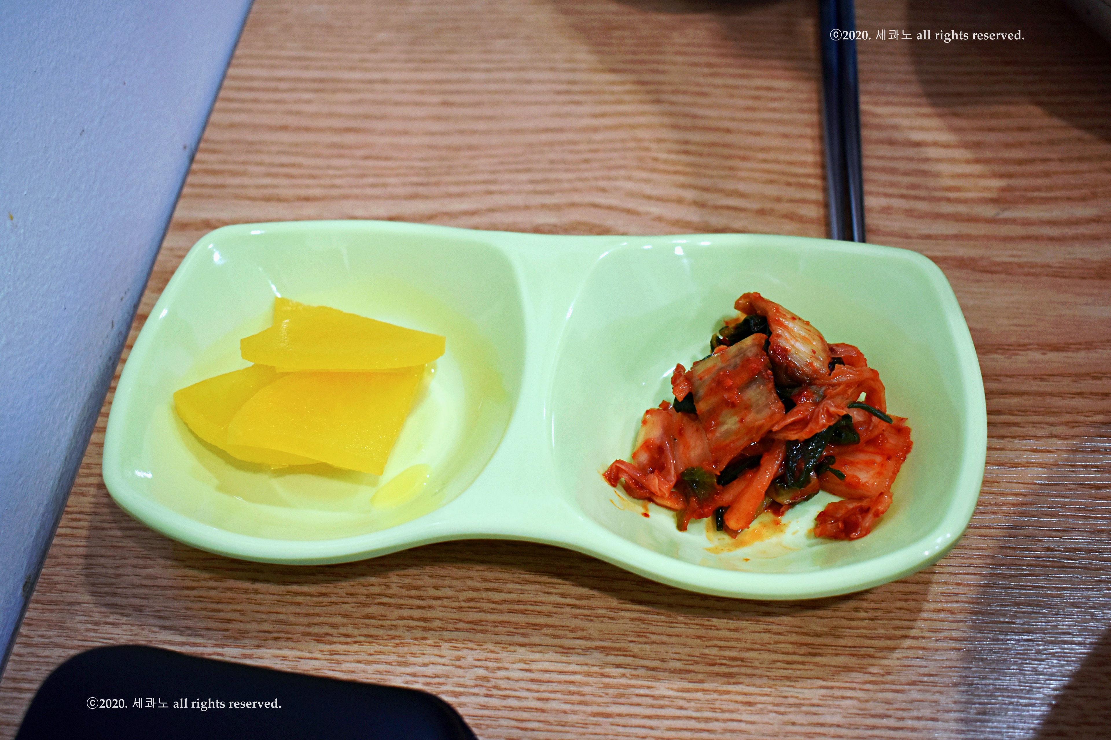 단무지와 김치가 있었다.