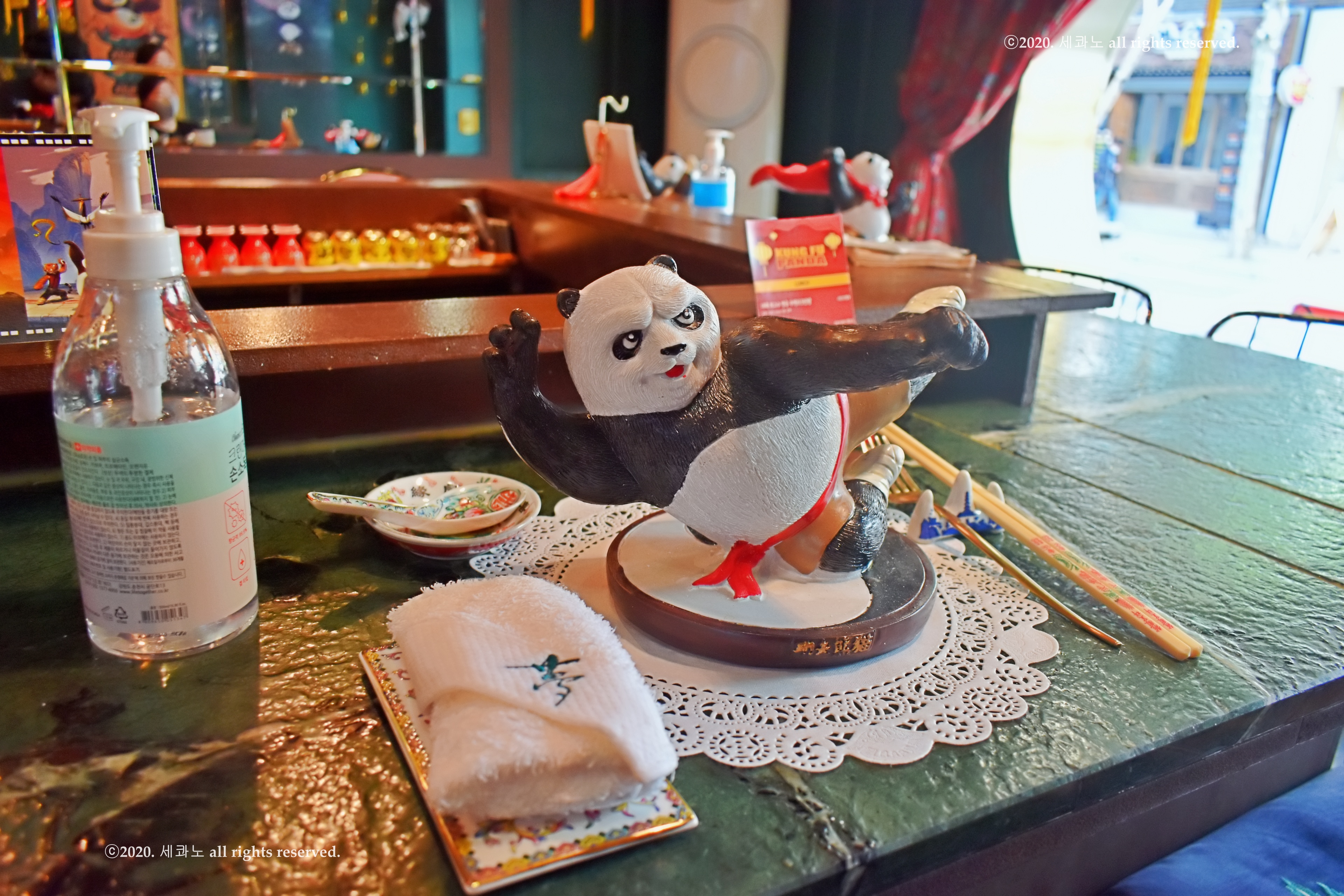 평화의 계곡’에서 아버지의 국수 가게를 돕고 있는 팬더, 포.
