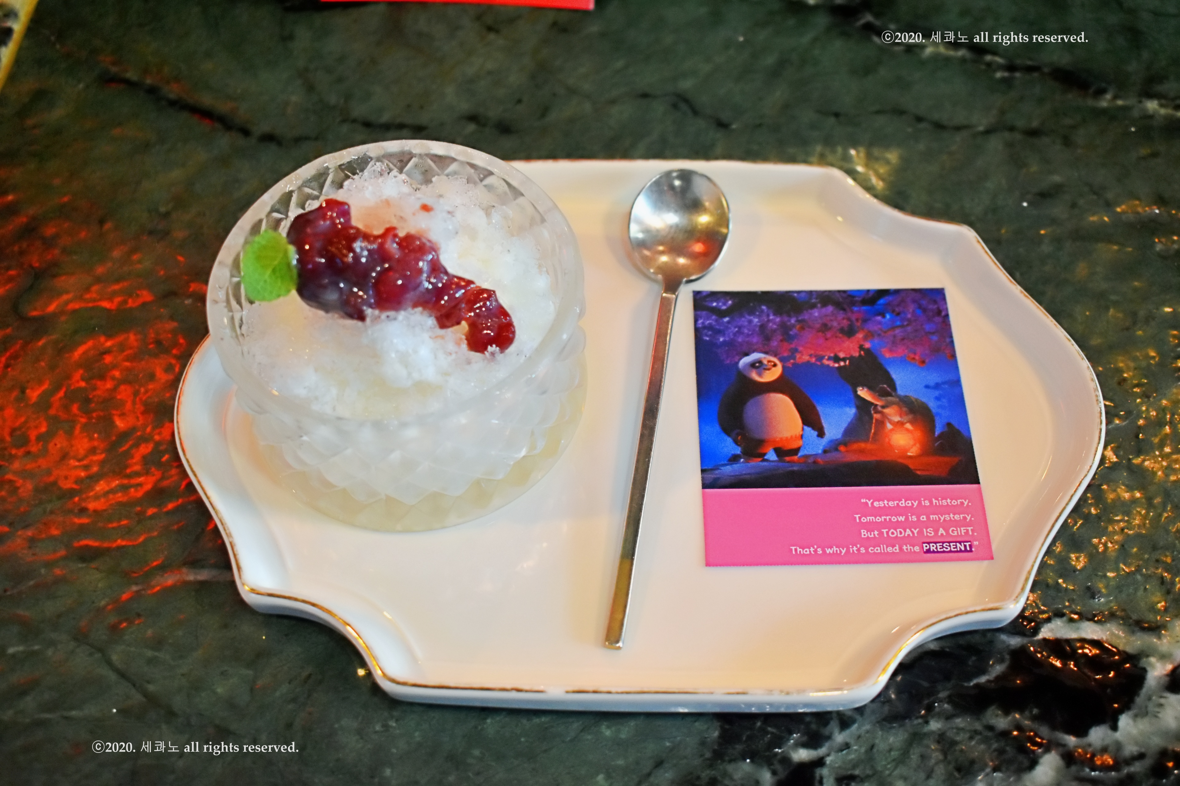 얼음과 단팥을 이용해 표현했으며
