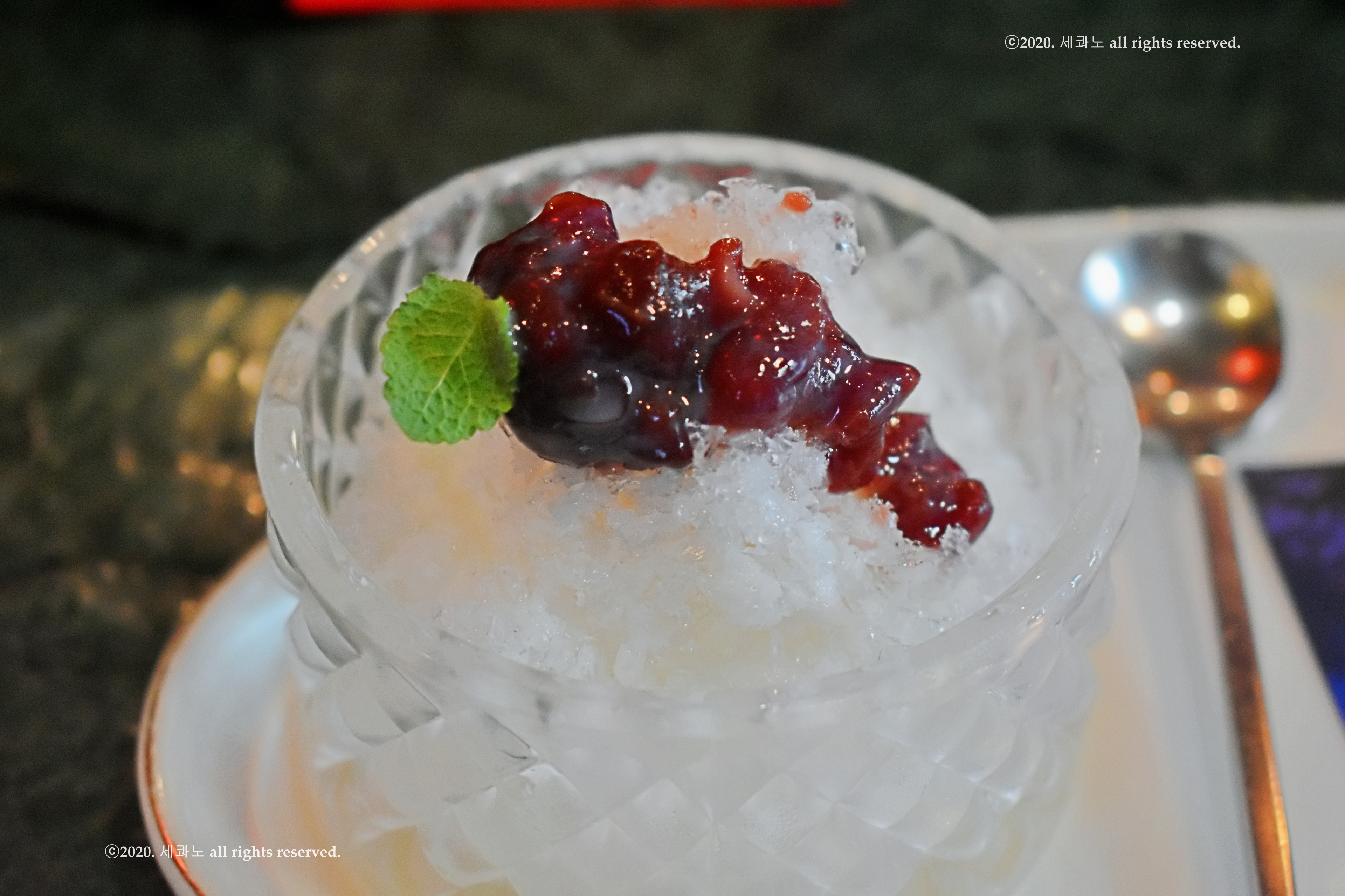 얼음과 단팥을 이용해 표현했으며