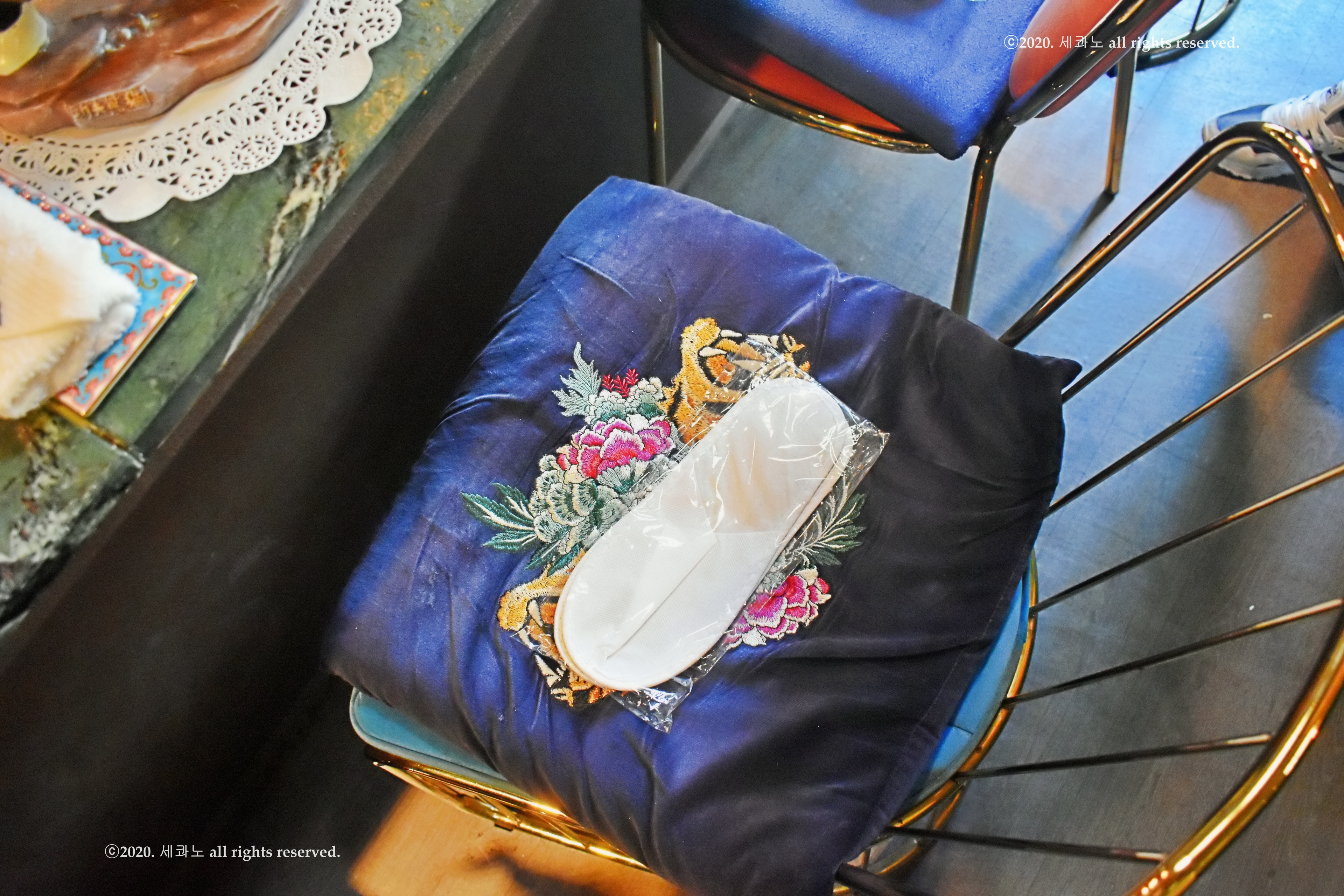자리에 슬리퍼가 놓여 있었다.