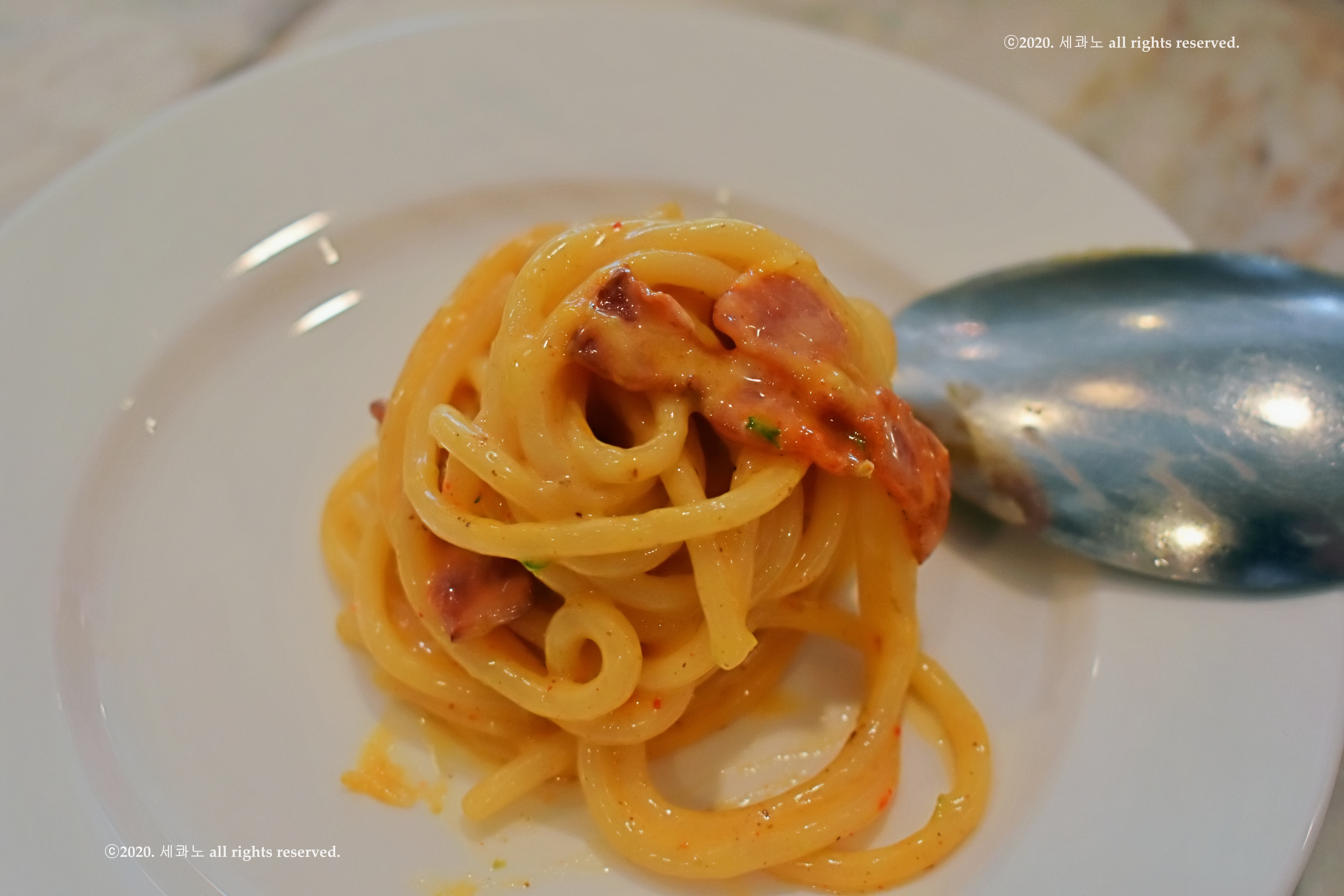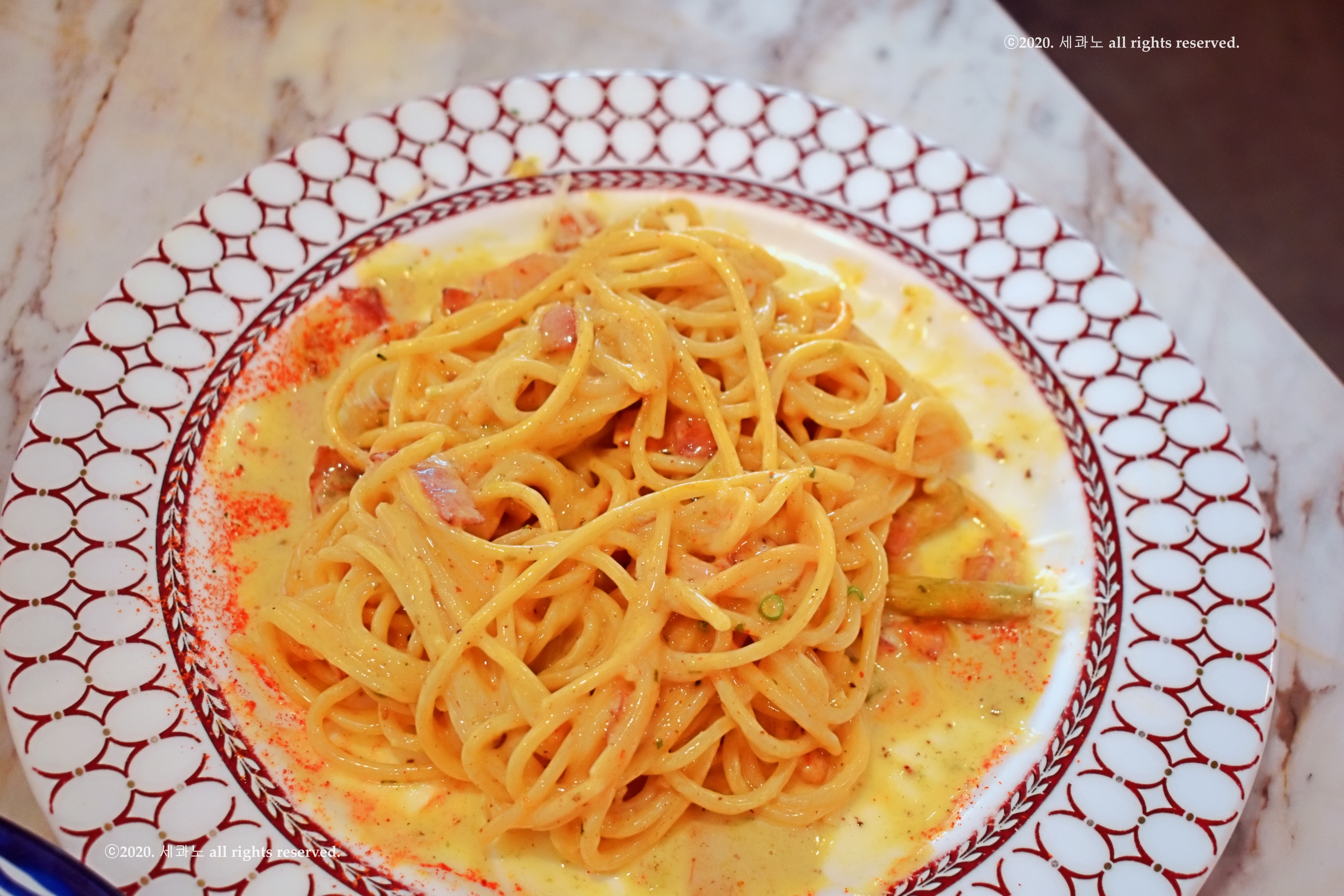 느끼함을 잡기 위해 크림소스에도 향신료를 섞은 듯싶었고