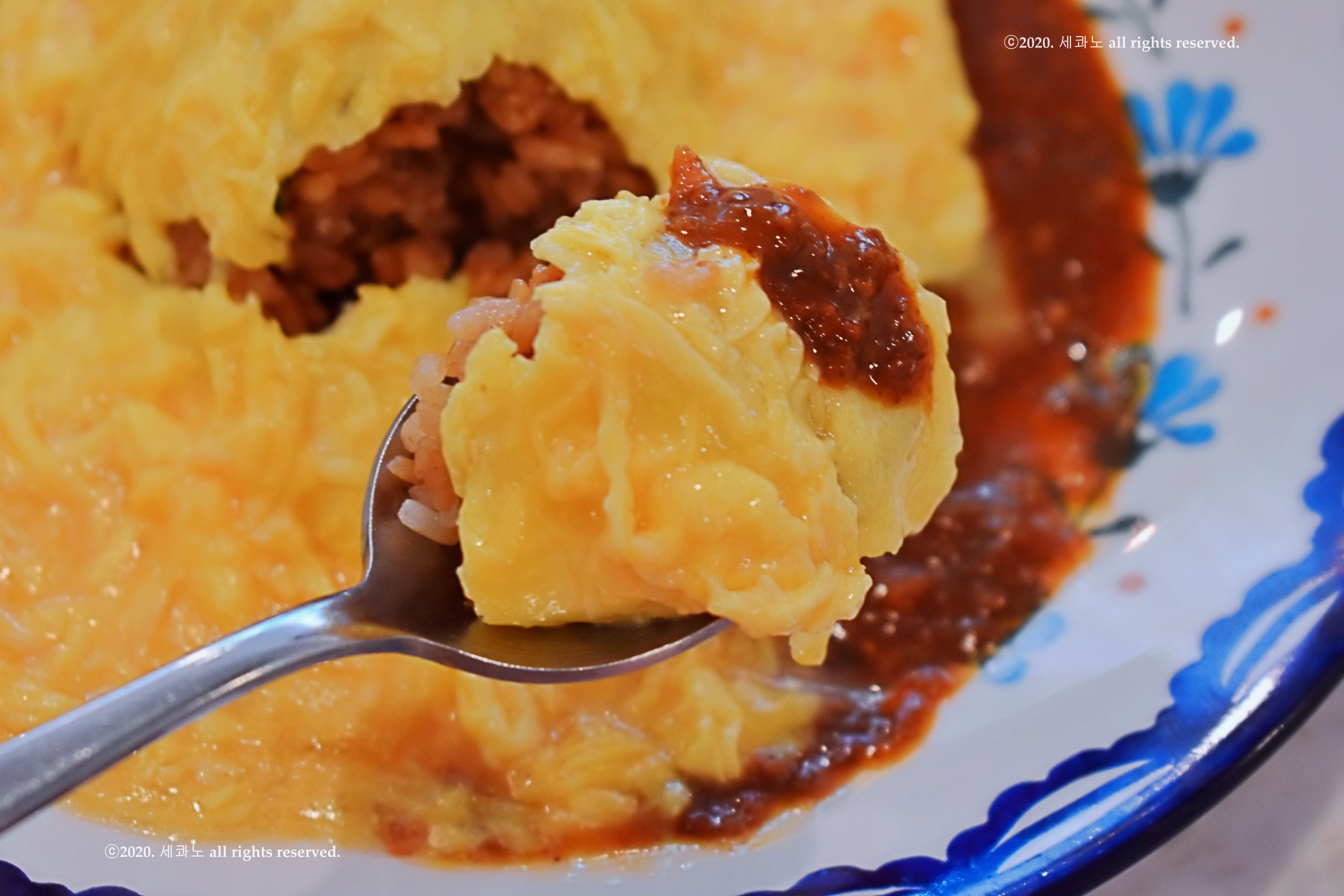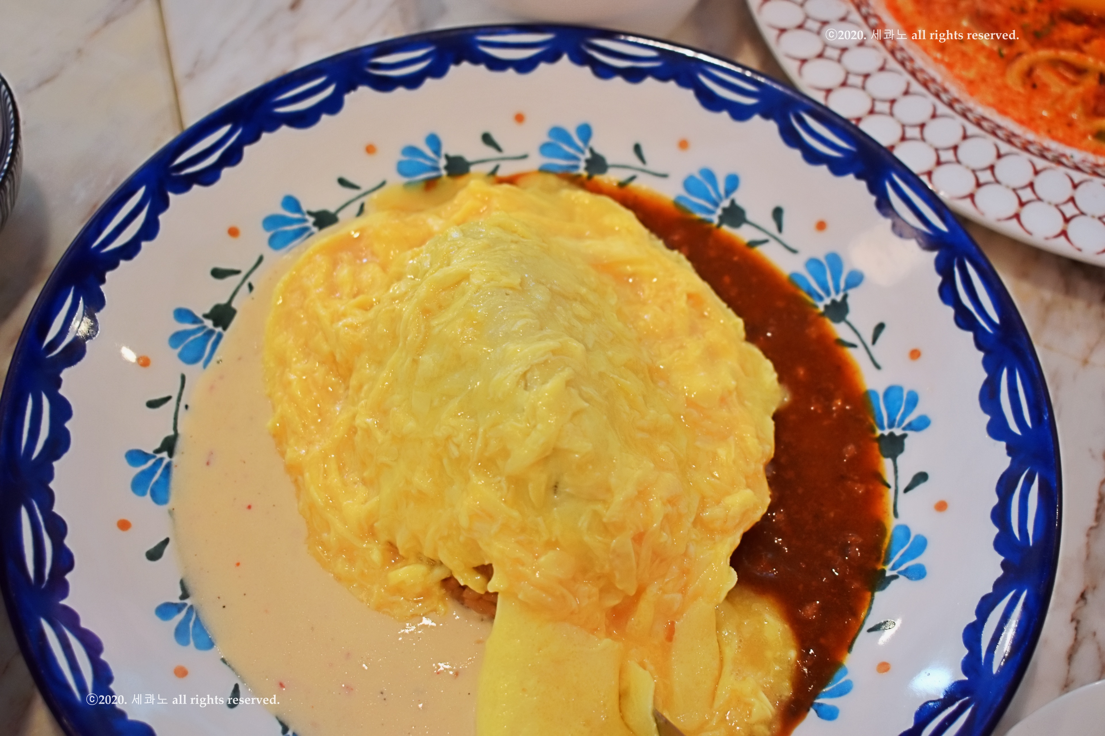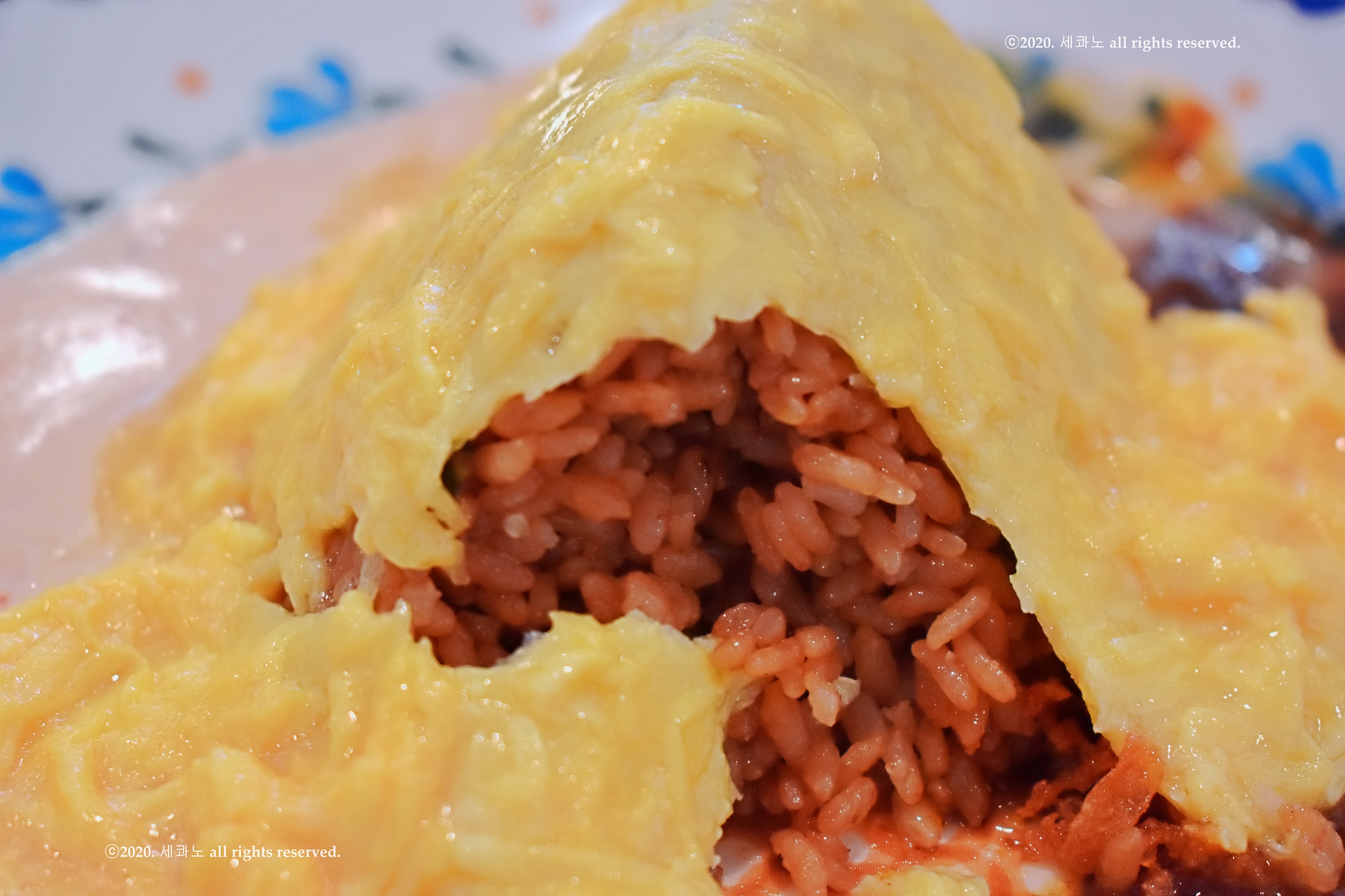 일본어로는 단뽀뽀 오므라이스 스타일이다.
