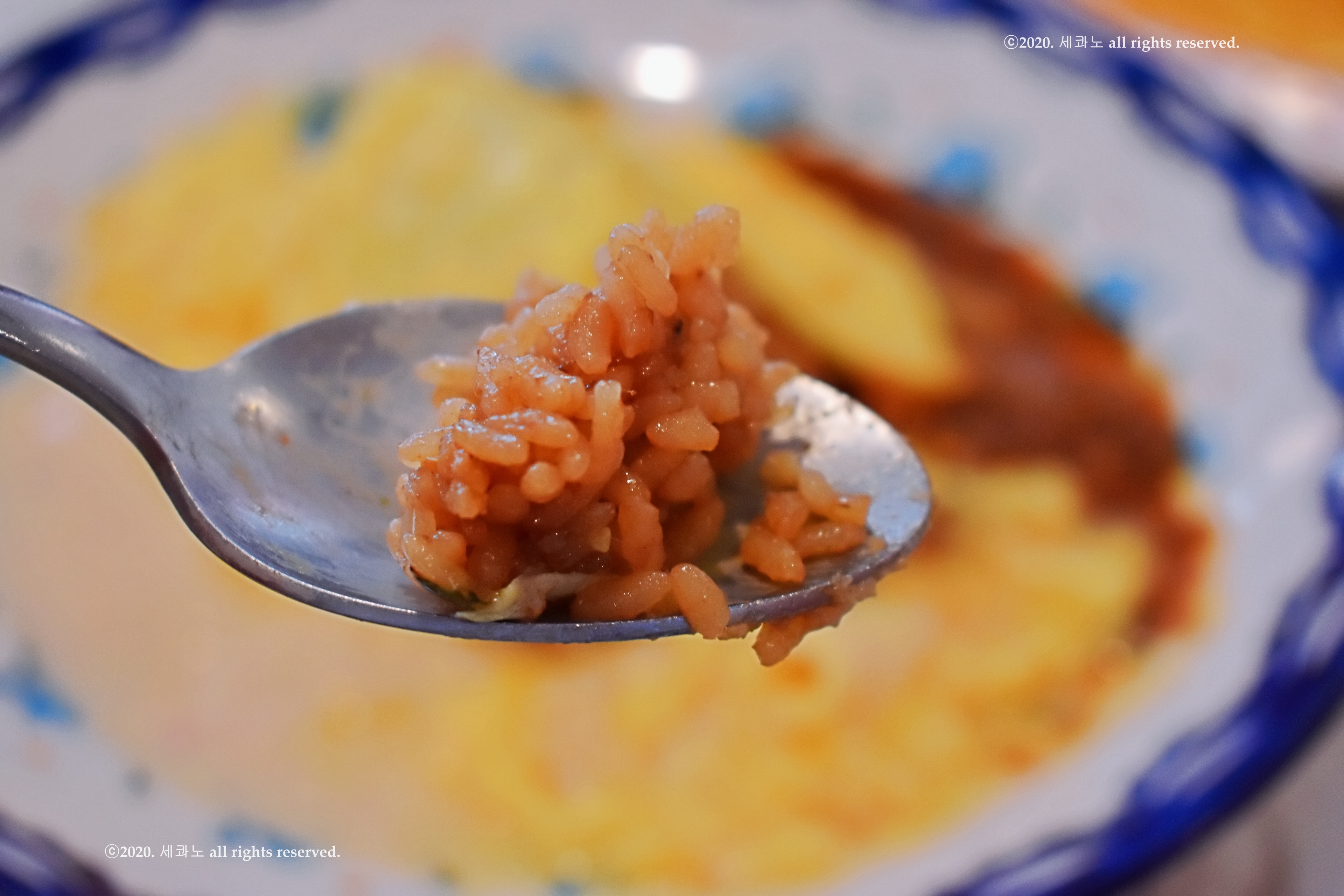 그리고 두 소스를 모두 한 숟가락에 먹어보기도 한다.