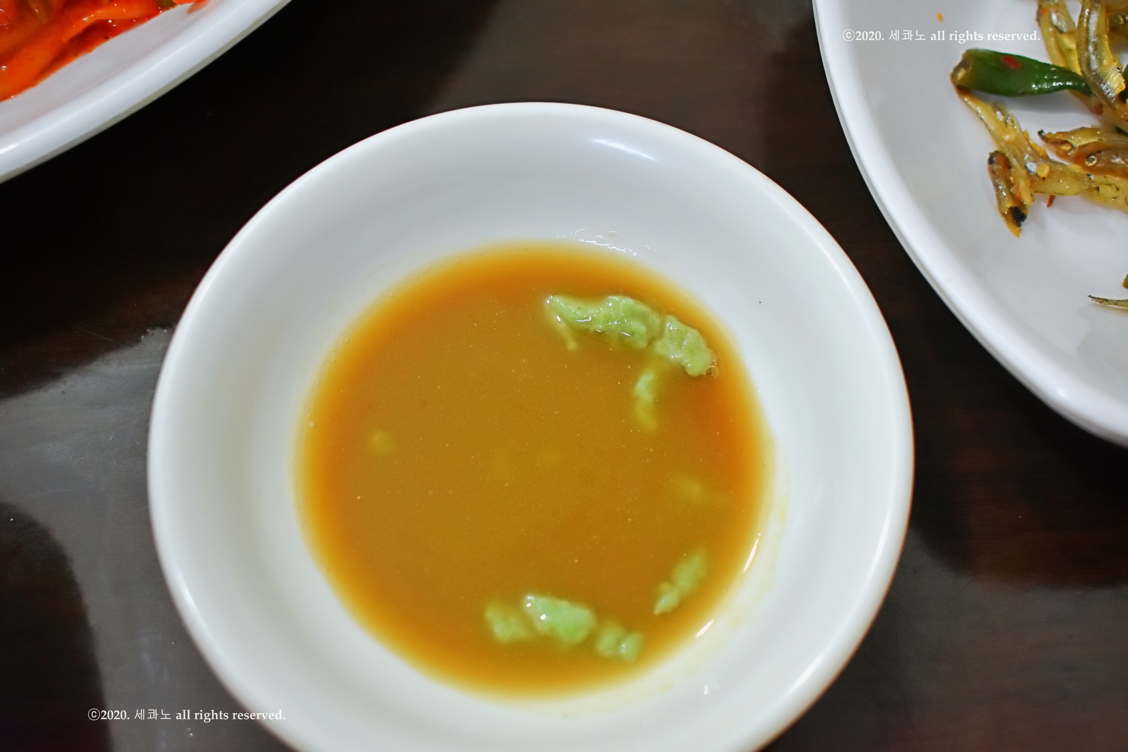 같이 나온 와사비와 간장으로 와사비 간장을 만들어