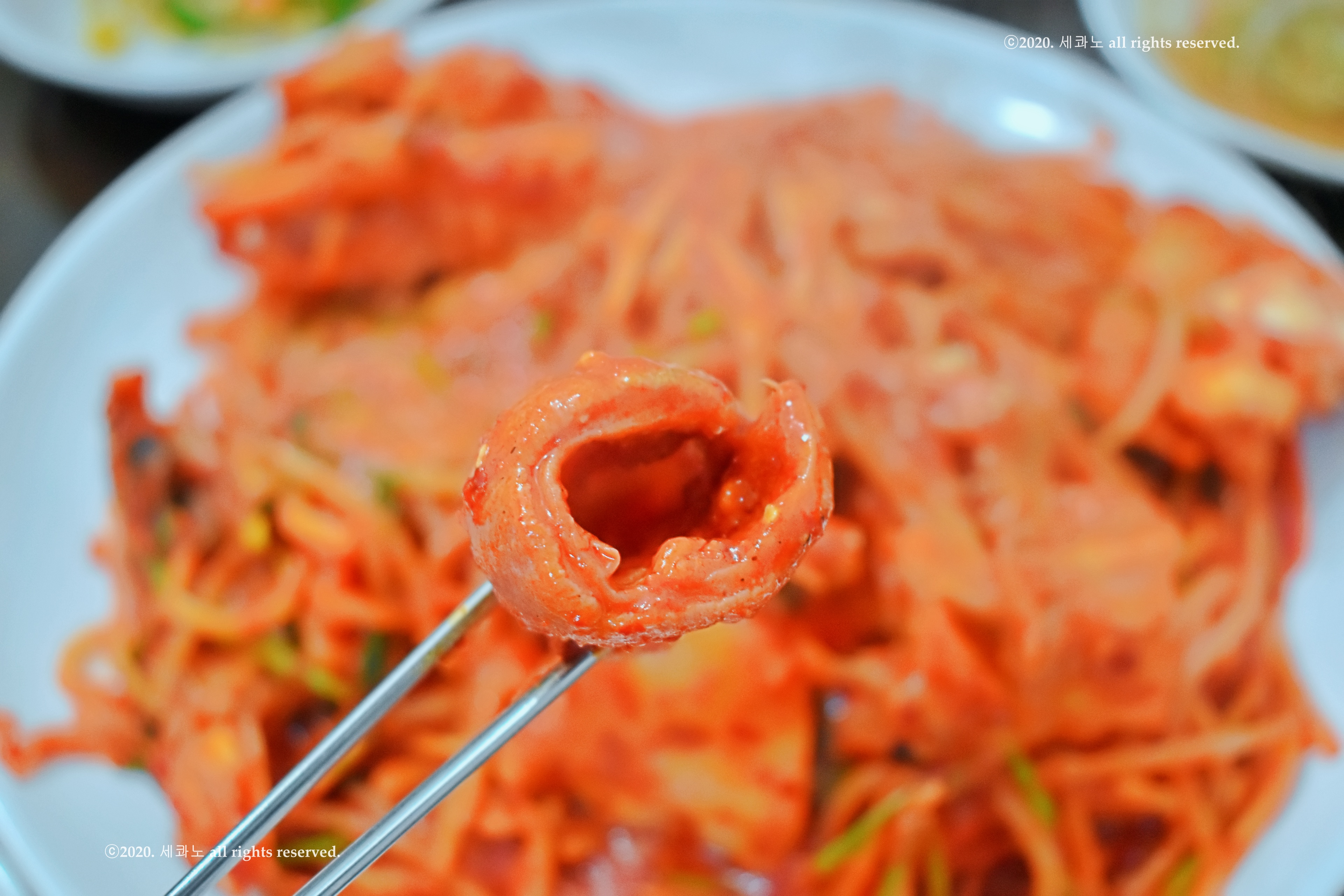 화면이 가득 찰 듯 푸짐해 보이는 사가정 시장 아구찜이지만