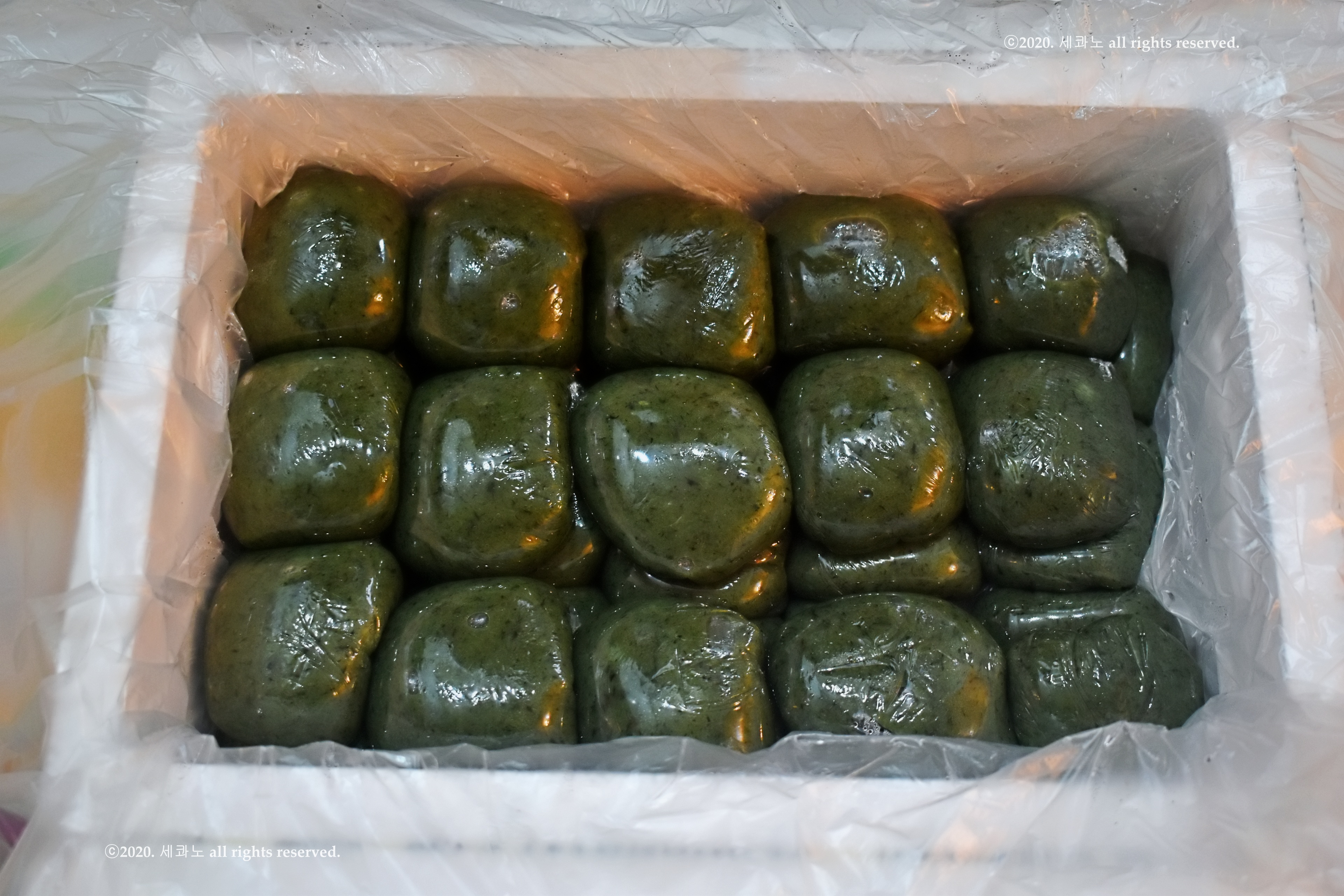 해남 쑥떡, 해풍 쑥떡 택배 박스를 열게 되면