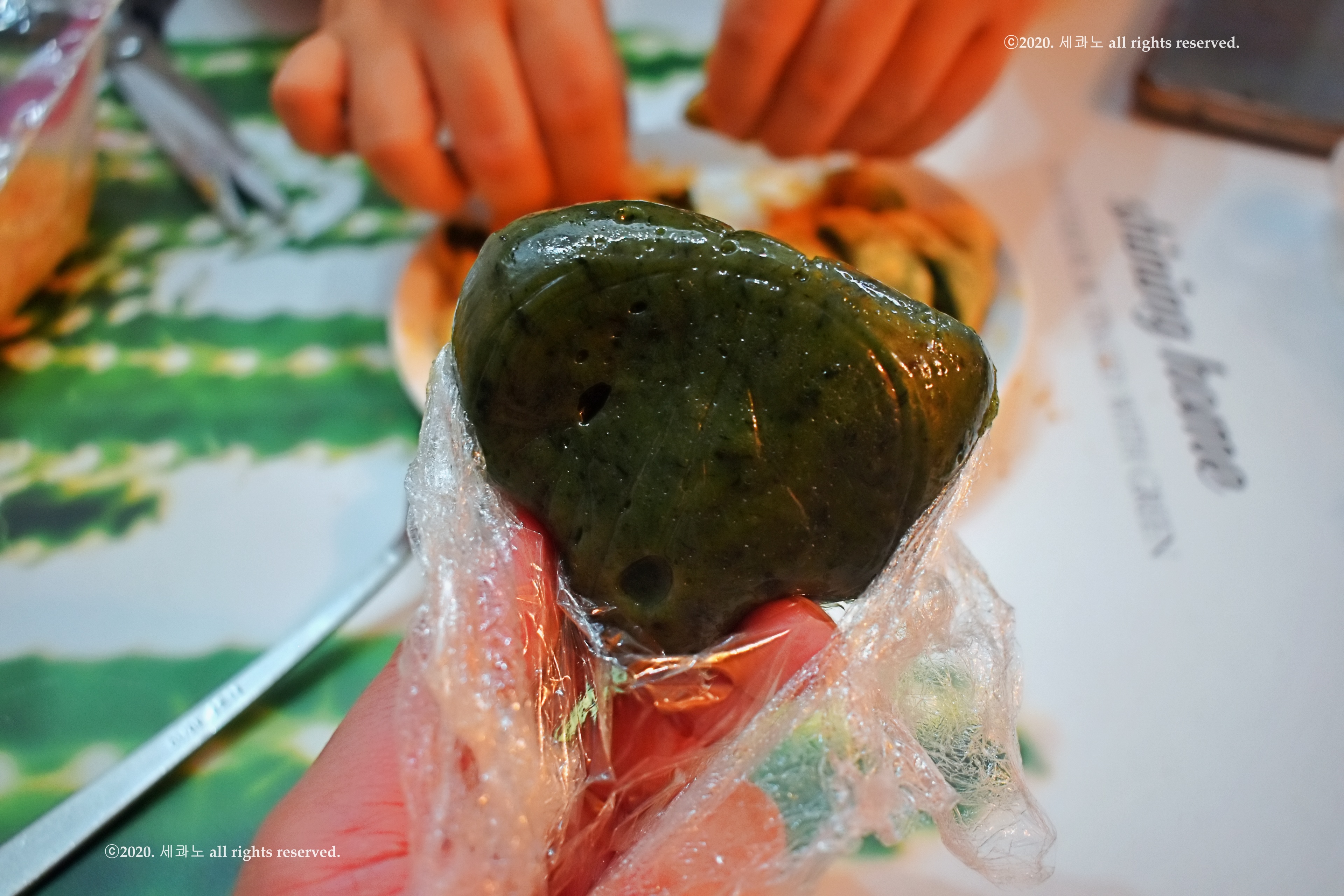 쑥떡에 콩고물을 묻혀 먹는 해남 쑥 인절미 달인으로 나왔던가?
