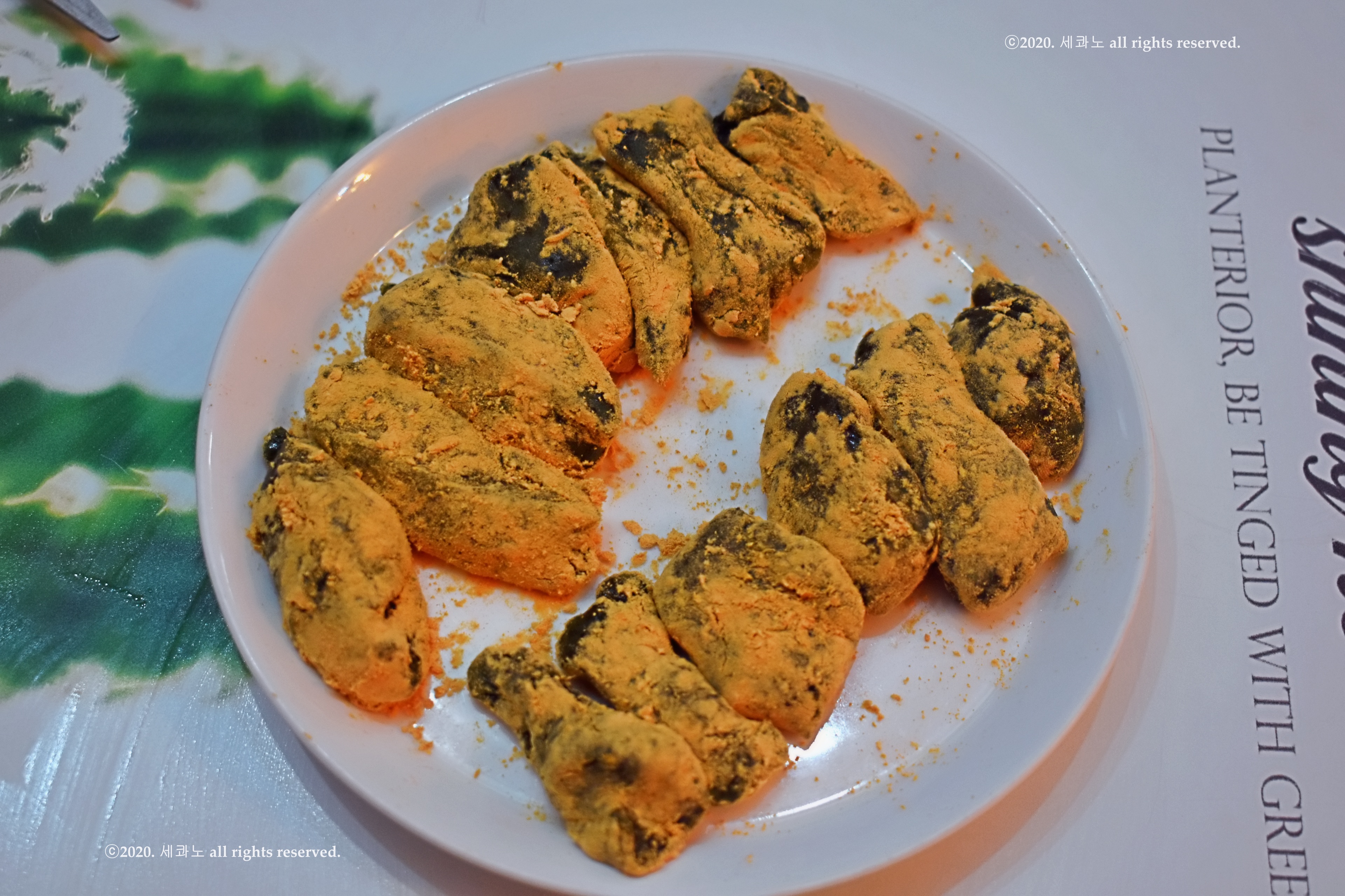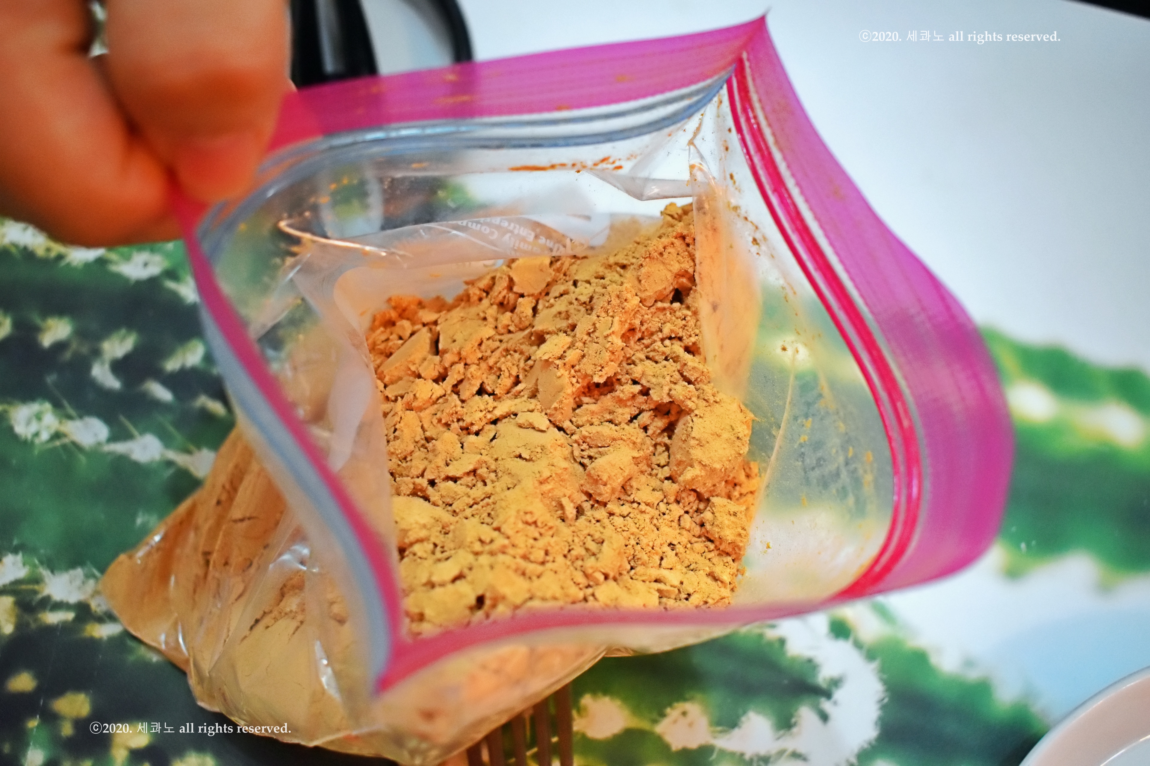 그래서 같이 동봉되어 온 콩고물을 가득 묻혀서
