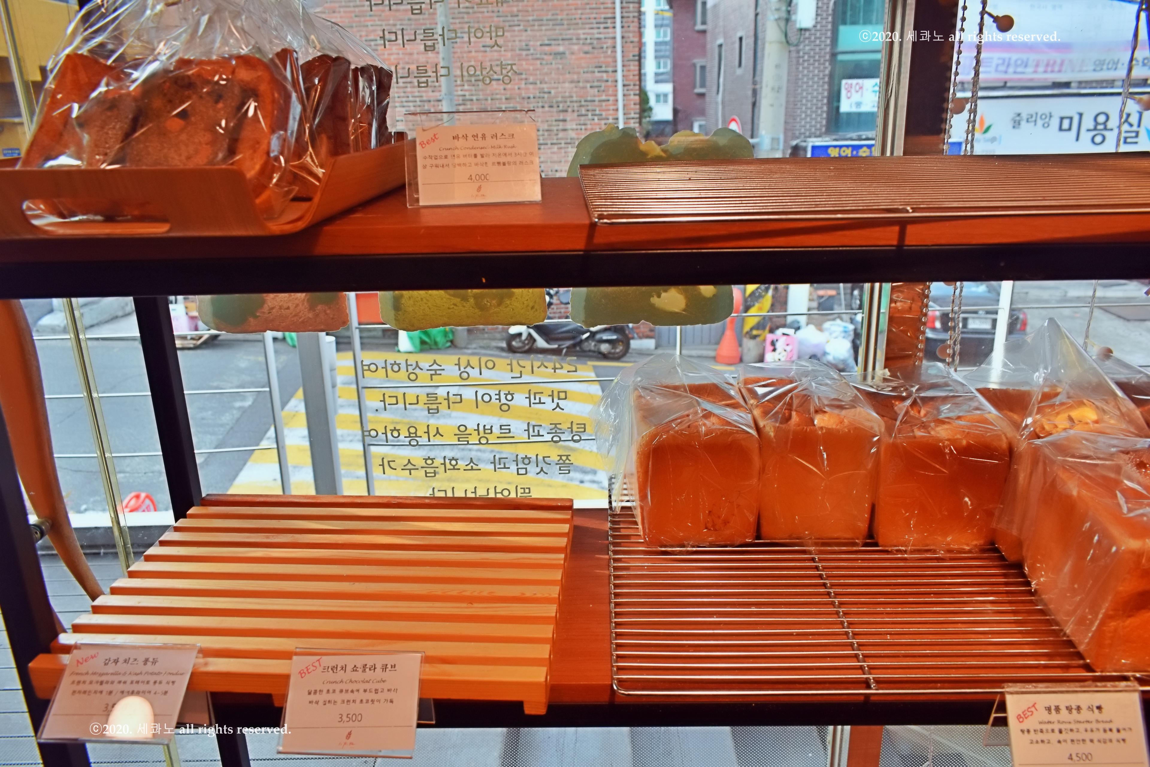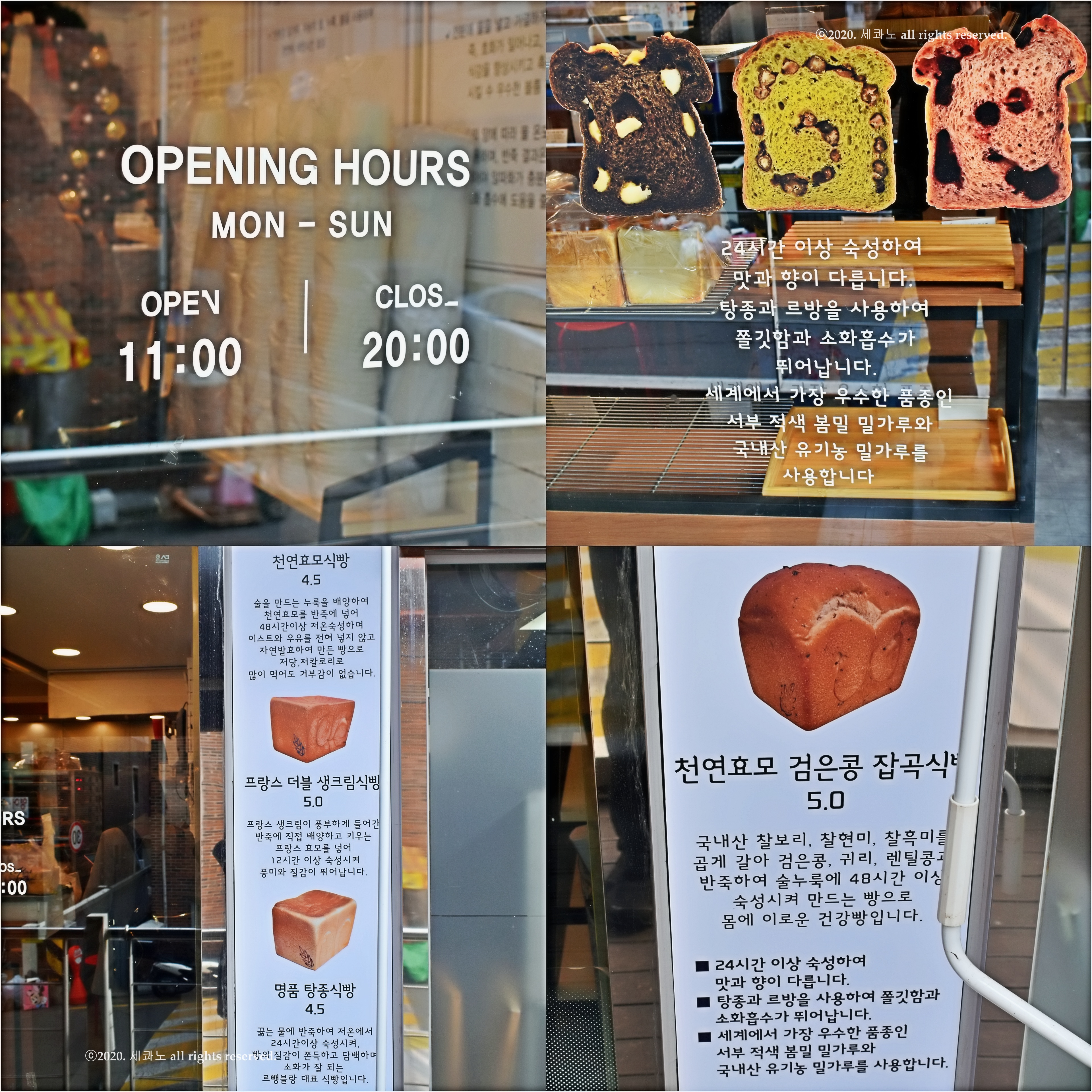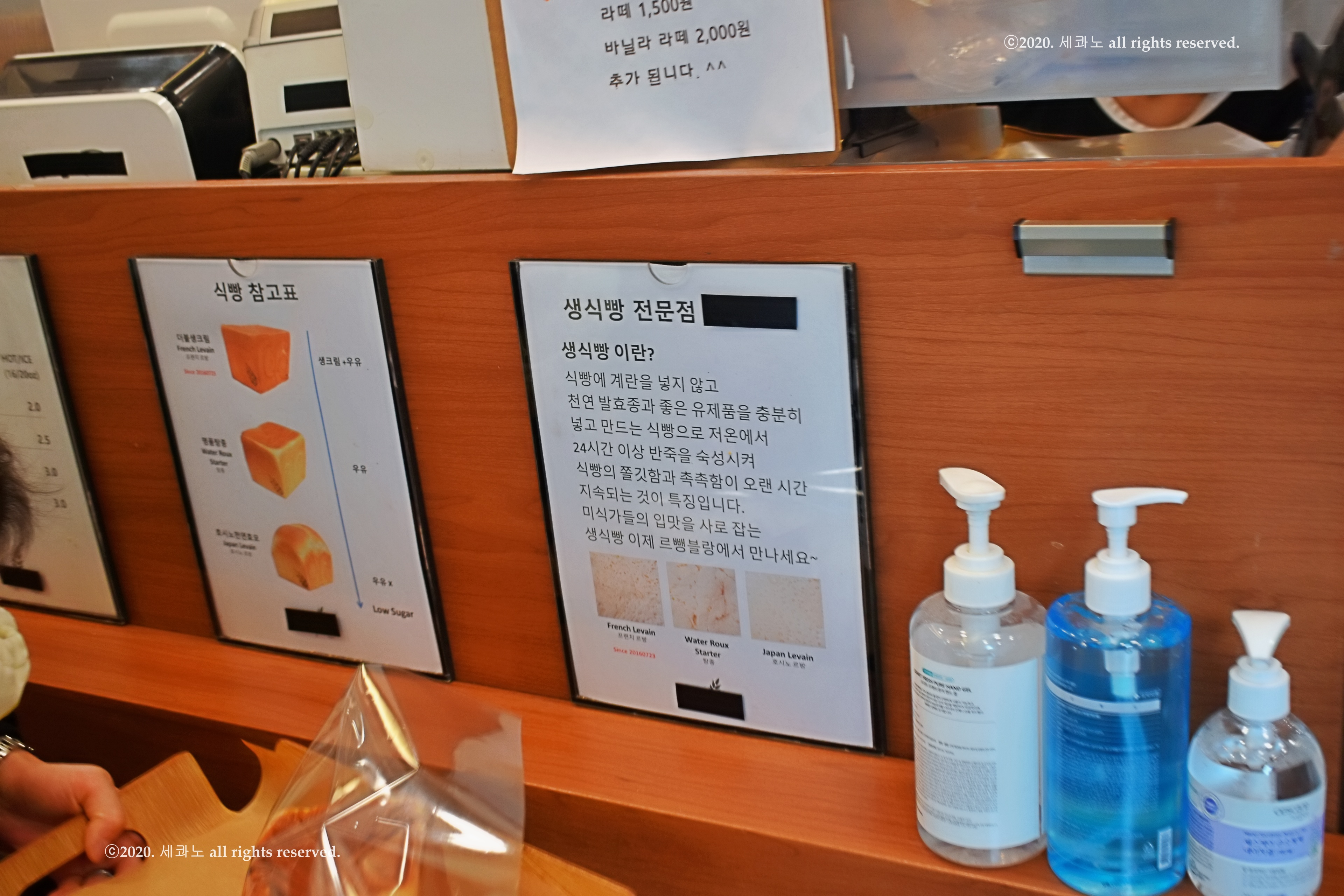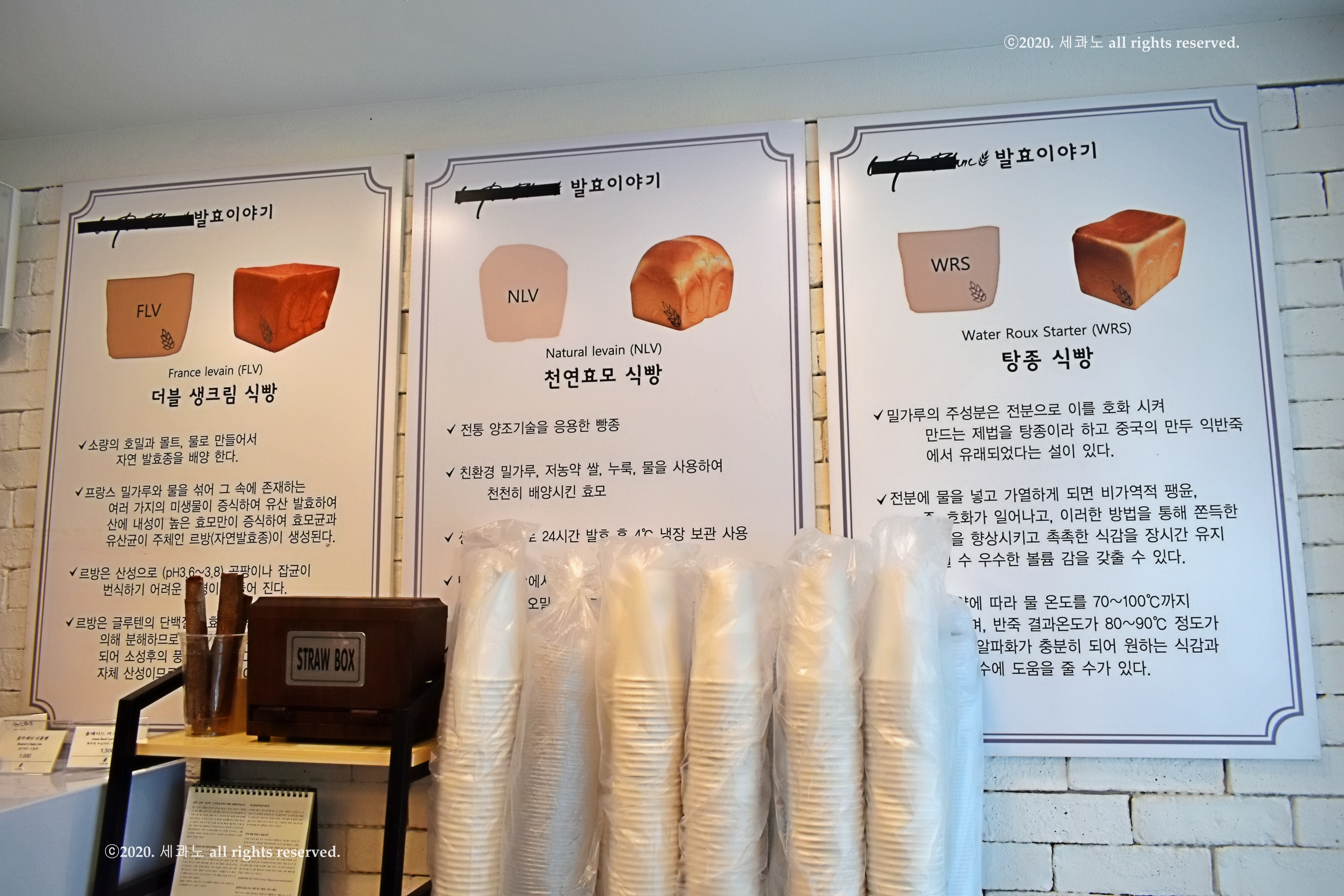 가게 내에 적혀 있는 탕종, 르방, 생식빵에 관한 내용들