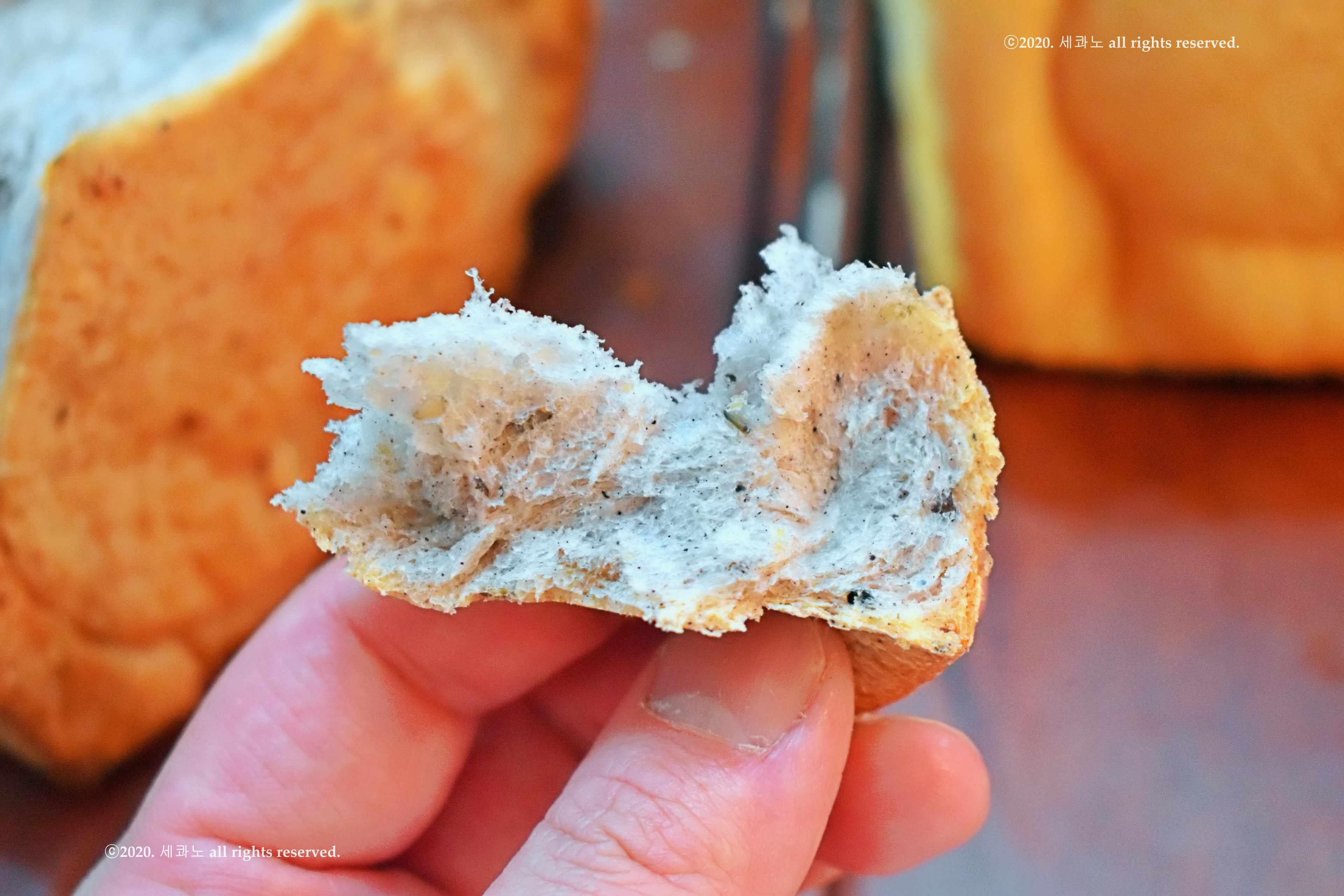 그래서 탕종 식빵의 경우 겉은 잡곡 식빵보다 쫄깃했으며